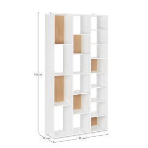 La libreria MDF Bianco Marrone Moderna da Interno 182h – ARCTIC è una soluzione d’arredo dal design ricercato, ideale per chi desidera coniugare stile contemporaneo e funzionalità. Realizzata in robusto MDF rivestito con carta amminica, si distingue per la finitura bicolore in bianco opaco e inserti marrone chiaro effetto legno naturale, che conferiscono calore e armonia visiva all’ambiente. Le linee geometriche e la struttura modulare asimmetrica creano un ritmo dinamico, offrendo vani di diverse dimensioni perfetti per esporre libri, oggetti decorativi, piante e accessori. Con le sue dimensioni generose (104x35x182 cm), ARCTIC si inserisce perfettamente in soggiorni moderni, studi eleganti, camere da letto o uffici, aggiungendo personalità e ordine agli spazi. La sua estetica minimalista ma accattivante la rende un elemento d’arredo capace di valorizzare ogni contesto abitativo, dal più sobrio al più creativo. Semplice da assemblare, solida e duratura, questa libreria è pensata per offrire un’esperienza d’uso pratica e soddisfacente, elevando al contempo lo stile e la funzionalità della casa.