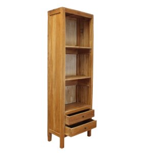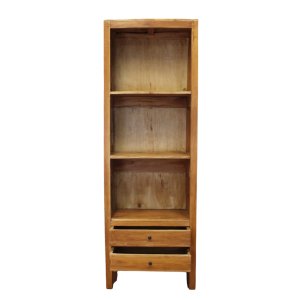 La Libreria in legno 3 ripiani 2 cassetti – CHLORIDA è un’elegante soluzione d’arredo in stile arte povera, ideale per ambienti raffinati e accoglienti come hotel, studi o soggiorni domestici. Realizzata interamente in pregiato legno di mogano, questa libreria fissa dal tono caldo marrone conferisce un tocco autentico e senza tempo all’ambiente in cui è collocata. Le dimensioni compatte ma slanciate (cm 65 x 33 x 195 h) la rendono perfetta anche per spazi più contenuti, offrendo al contempo tre ampi ripiani per libri, oggetti decorativi o accessori e due pratici cassetti inferiori con pomelli scuri in metallo, ottimi per riporre piccoli oggetti. Le venature naturali del legno, ben visibili e valorizzate da una finitura artigianale, accentuano il carattere rustico e vivido del mobile, trasmettendo una gradevole sensazione di calore e autenticità. La libreria CHLORIDA rappresenta una scelta di stile e funzionalità, capace di arricchire l’ambiente con gusto e personalità, offrendo non solo spazio contenitivo ma anche una vera esperienza estetica in chiave tradizionale.