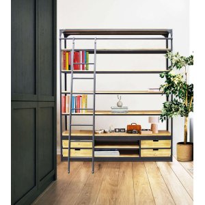 La Libreria Industrial in Acciaio Legno cm 182x41x217 – NEWTON è un arredo dal forte impatto visivo, perfetto per chi desidera coniugare estetica urbana e funzionalità in un’unica soluzione di design. Realizzata con una solida struttura in acciaio nero e ripiani in legno naturale, questa libreria si distingue per il suo stile industrial deciso e autentico, ideale per ambienti moderni, loft metropolitani o studi dal gusto contemporaneo. Le sue ampie dimensioni (182x41x217 cm) offrono sei spaziosi ripiani per esporre libri, oggetti d’arredo o collezioni, mentre i quattro cassetti inferiori, in legno a vista, permettono di organizzare con discrezione gli accessori meno decorativi. Dettaglio distintivo e funzionale è la presenza della scala scorrevole in metallo, che ne esalta il carattere vintage-industrial e consente di raggiungere facilmente anche i ripiani più alti. La Libreria NEWTON è pensata per chi cerca un mobile di forte personalità e grande solidità, capace di diventare protagonista in soggiorni, studi professionali o ambienti open space, offrendo un’esperienza d’uso pratica e un fascino unico dal sapore urban.