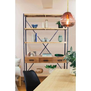La Libreria Industrial in Legno Metallo cm 114 3×46 5×136 – COLIN è la soluzione perfetta per chi desidera arricchire i propri ambienti con un arredo funzionale dallo stile deciso e contemporaneo. Realizzata con una struttura in acciaio verniciato nero e ripiani in legno massello finitura naturale, questa libreria unisce robustezza e calore materico in un elegante equilibrio industrial. I quattro spaziosi ripiani, affiancati da tre cassetti pratici con maniglie in metallo e da una struttura a croce sul retro per maggiore stabilità, rendono la COLIN ideale per organizzare libri, oggetti decorativi o accessori da ufficio con uno stile inconfondibile. Le ruote alla base aggiungono un tocco di versatilità, permettendo di spostarla facilmente secondo le necessità. Le sue dimensioni generose (114,3 x 46,5 x 136 cm) la rendono perfetta sia per il soggiorno che per lo studio o l’home office, dove esprime al meglio il suo carattere deciso, offrendo un perfetto connubio tra estetica industriale e praticità quotidiana.