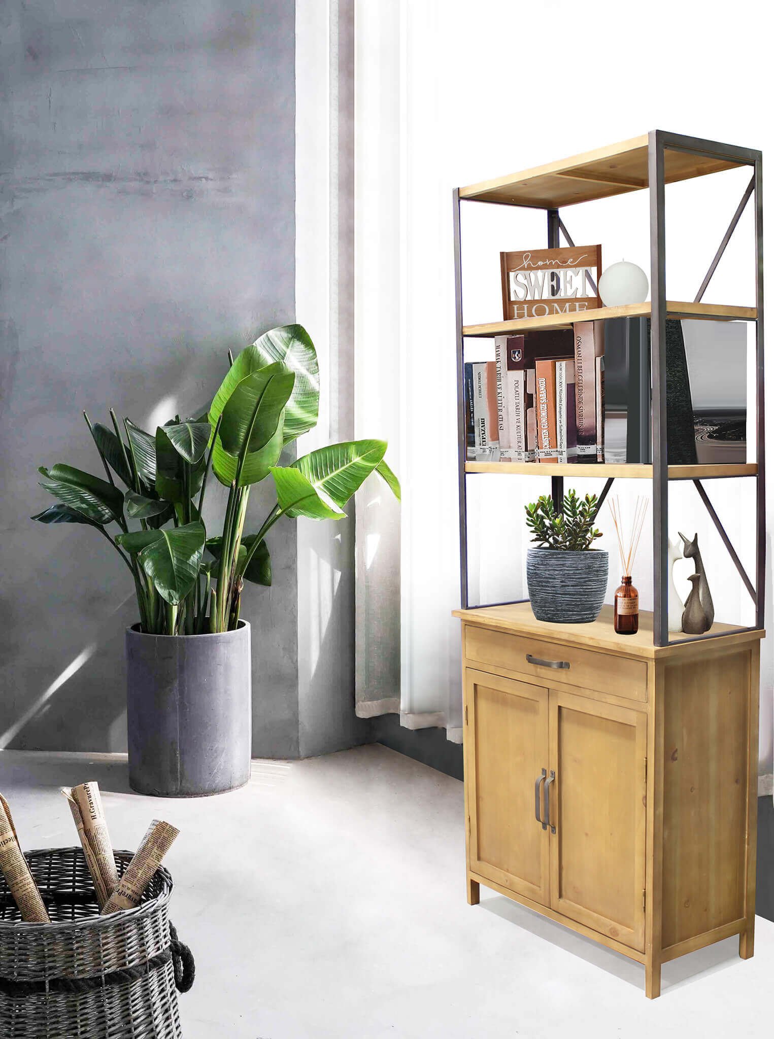 La Libreria Industrial in Legno Metallo cm 73,5×37,5×186 – TERRENCE è l’arredo perfetto per chi desidera unire funzionalità e stile in un’unica soluzione dalla forte personalità. Caratterizzata da una struttura in robusto acciaio nero e ripiani in legno dalla calda finitura marrone, questa libreria si distingue per il suo design industriale deciso ma raffinato, ideale per ambienti moderni, loft metropolitani o spazi dallo stile urban. Le dimensioni ben proporzionate permettono di sfruttare al massimo la verticalità senza essere ingombranti, mentre la pratica combinazione di mensole a giorno, un cassetto centrale e l’ampio vano con ante inferiori garantisce grande versatilità d’uso, perfetta per contenere libri, oggetti decorativi o articoli per l’ufficio. Il dettaglio incrociato sul retro in metallo aggiunge un tocco estetico distintivo, evocando le iconiche strutture d’officina. La libreria TERRENCE non è solo un mobile pratico, ma una vera dichiarazione di stile che valorizza lo spazio in cui si inserisce, rendendolo più accogliente e ricercato.