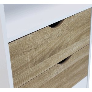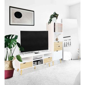 La Libreria Moderna in Legno cm 50x39x171 – PALMER è la soluzione d’arredo perfetta per chi desidera un complemento salvaspazio dallo stile contemporaneo e funzionale. Realizzata in resistente truciolare bilaminato, unisce l’eleganza del bianco alle calde tonalità del legno naturale, per un contrasto armonioso che si adatta facilmente sia ad ambienti moderni che nordici. Il design essenziale, impreziosito da gambe in stile scandinavo e finiture pulite, trasmette una sensazione di ordine e leggerezza visiva. I due ripiani aperti offrono spazio per libri, oggetti decorativi o accessori d’uso quotidiano, mentre i tre cassetti con maniglie integrate e l’anta con vano interno garantiscono ulteriore contenimento in modo discreto ed elegante. Le dimensioni compatte rendono la libreria PALMER ideale per salotti, studi o camere da letto, portando funzionalità e stile anche in spazi contenuti. Piacevole da vivere e semplice da abbinare, questo mobile valorizza ogni ambiente domestico con un tocco sobrio ma raffinato.