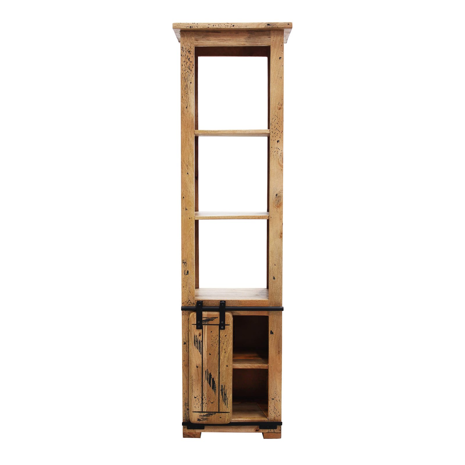 La Libreria per soggiorno Industrial in Legno cm 50x40x180 – RICK è un arredo dal carattere deciso e autentico, perfetto per chi ama lo stile industriale con un tocco artigianale. Realizzata in pregiato legno di mango, si distingue per la struttura solida e le venature naturali messe in risalto da dettagli effetto vissuto, che conferiscono unicità a ogni pezzo. L’intelaiatura in acciaio nero e l’anta scorrevole su binario metallico richiamano il design delle vecchie officine, un dettaglio estetico e funzionale che dona movimento e stile all’intero mobile. Con una configurazione che prevede 5 ripiani ben distribuiti e una comoda anta, la libreria RICK offre uno spazio contenitivo versatile per libri, oggetti decorativi o complementi d’uso quotidiano. Le dimensioni compatte (cm 50x40x180 h) la rendono adatta anche ad ambienti più contenuti, senza rinunciare all’impatto visivo. L’elegante abbinamento di marrone caldo del legno e nero del ferro ne fa una scelta ideale per soggiorni, studi o open space dal gusto contemporaneo e metropolitano. La libreria RICK non è solo un mobile funzionale, ma un vero elemento di stile che arricchisce e personalizza ogni ambiente con personalità e raffinatezza.