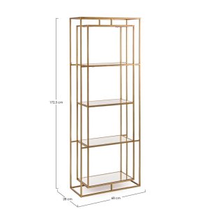 La Libreria Vetro Oro Moderna da Interno – KENNETH è un raffinato elemento d’arredo che coniuga eleganza contemporanea e materiali di qualità. La sua struttura in acciaio verniciata a polvere epossidica, con finitura color oro, conferisce luce e prestigio all’ambiente, mentre i ripiani in vetro trasparente da 53,5×28 cm aggiungono leggerezza visiva e versatilità. Il design geometrico e lineare della libreria KENNETH esprime uno stile moderno e sofisticato, ideale per valorizzare soggiorni, studi o ambienti living dal gusto ricercato. I dettagli visivi distintivi, come la struttura aperta e l’armonia tra forme e proporzioni, rendono questo mobile un complemento perfetto per esporre libri, oggetti decorativi o collezioni con stile e ordine. La Libreria Vetro Oro Moderna da Interno – KENNETH non è solo funzionale, ma anche un vero e proprio elemento di design che arricchisce lo spazio e accende lo sguardo, offrendo un’esperienza d’arredo luminosa e contemporanea.