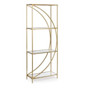 La Libreria Vetro Oro Moderna da Interno – RONAN è una raffinata sintesi di eleganza contemporanea e funzionalità, pensata per impreziosire ambienti interni con uno stile ricercato. Il design essenziale ma sofisticato si distingue per la struttura geometrica in acciaio verniciato a polvere epossidica con finitura oro, che conferisce immediatamente un tocco di lusso all’arredo casa. I quattro ampi ripiani in vetro trasparente offrono una superficie luminosa e leggera, ideale per esporre libri, oggetti decorativi o elementi di design, mantenendo un’estetica ariosa e ordinata. L’elemento distintivo è rappresentato dalle forme semicircolari dorate che interrompono con eleganza la linearità della struttura, creando un gioco visivo dinamico e armonioso. Perfetta per ambienti moderni, minimalisti o glamour, la libreria RONAN è un vero complemento d’arredo che valorizza soggiorni, studi o ingressi, offrendo non solo praticità ma anche un forte impatto visivo. In ogni contesto, dalla casa all’ufficio, questa libreria moderna dorata esprime appieno il suo valore decorativo trasformando lo spazio in un angolo di stile e personalità.