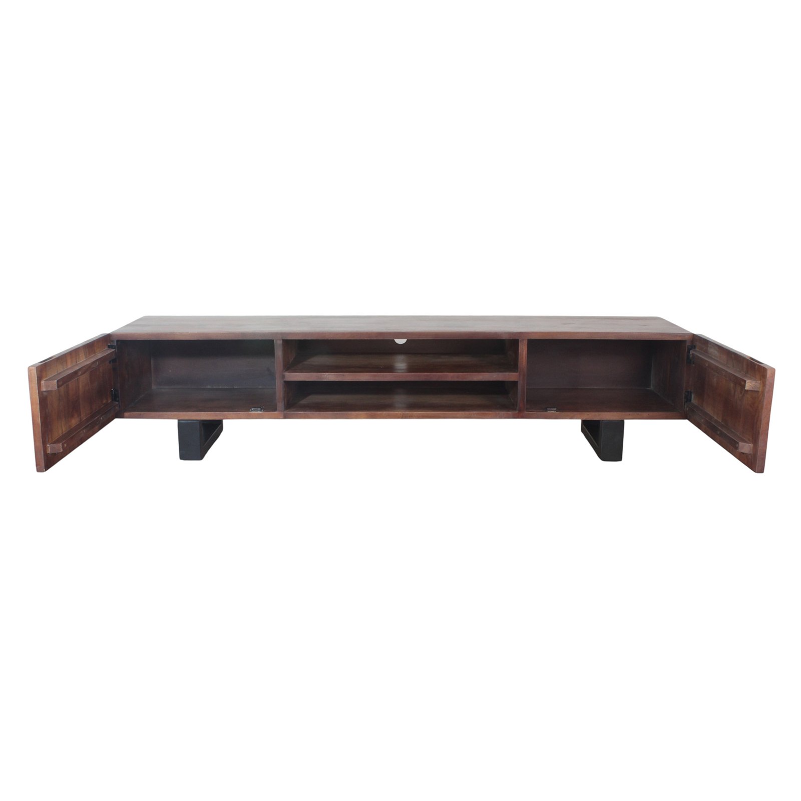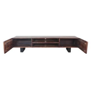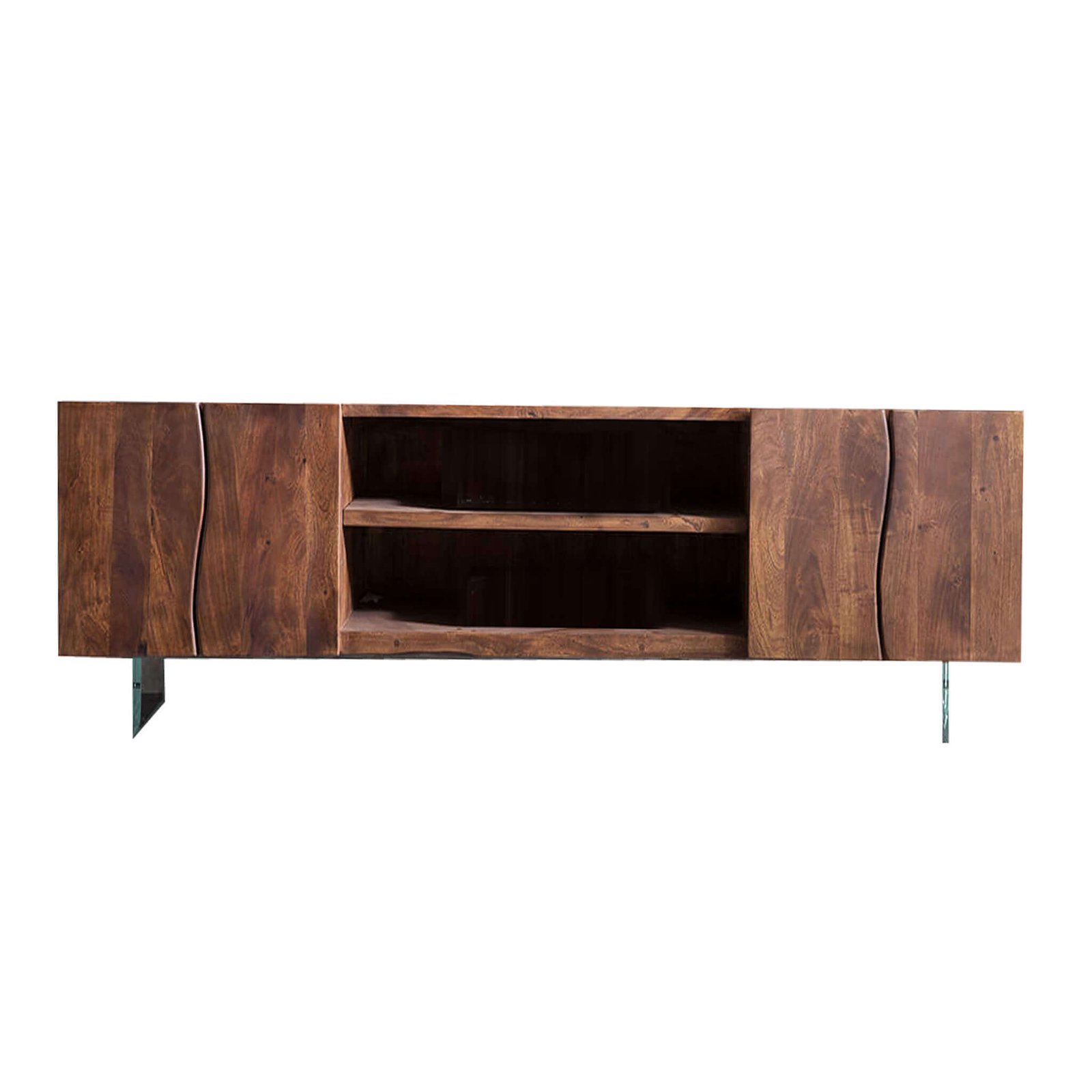 Il Mobile TV in legno di acacia – BRAY è un raffinato elemento d’arredo pensato per valorizzare con stile e funzionalità la zona living. Realizzato in pregiato legno massello di acacia e sorretto da sottili supporti in acciaio, questo mobile combina il calore naturale della materia con un design moderno e lineare. La tonalità marrone intensa, con venature a vista che esaltano l’autenticità del materiale, conferisce eleganza e solidità visiva, mentre i pannelli dalle forme lievemente irregolari aggiungono un tocco artigianale e distintivo. Le dimensioni generose (200 x 45 x 45 cm h) offrono ampia capienza per dispositivi elettronici e oggetti d’arredo, grazie a due vani centrali a giorno e sportelli laterali integrati che mantengono l’estetica ordinata e armoniosa. Il Mobile TV BRAY è perfetto per ambienti contemporanei, industriali o naturali, dove si desidera un equilibrio tra funzionalità e bellezza materica. Ideale come punto focale nella parete soggiorno, esprime al meglio il suo valore in contesti moderni dove il design incontra l’autenticità del legno vero.