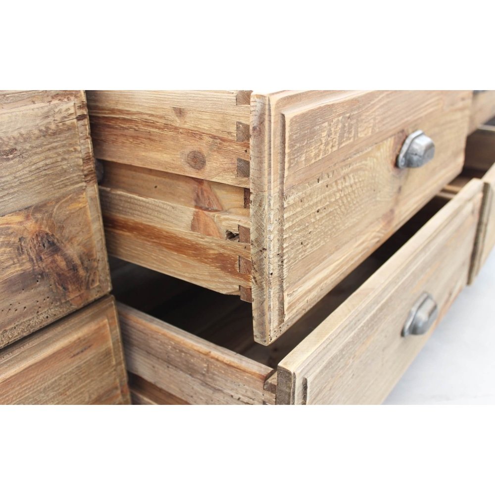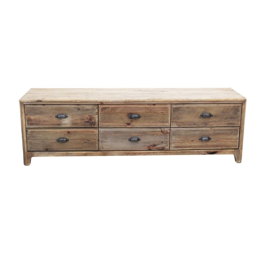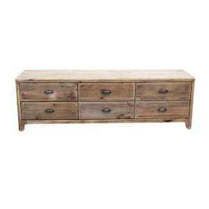 Il Porta TV con 6 cassetti in Pino riciclato cm 180x45x55 – PINE è un mobile dal fascino autentico, perfetto per arricchire l’arredo casa con un tocco di stile rustico e sostenibile. Realizzato interamente in legno di pino riciclato, questo complemento unisce la solidità del materiale naturale al rispetto per l’ambiente, donando carattere e calore all’ambiente living. La struttura robusta e le finiture grezze valorizzano ogni venatura e imperfezione del legno, rendendo ogni pezzo unico e inconfondibile. Il colore marrone caldo si armonizza con ambienti dallo stile country, industrial o scandinavo, mentre i sei ampi cassetti con maniglie in metallo offrono praticità e abbondante spazio contenitivo per mantenere ordine e funzionalità. Le dimensioni generose (180 x 45 x 55 cm) lo rendono ideale come base per TV di grandi dimensioni, ma anche come elemento d’arredo d’impatto all’interno di salotti o open space. Il Porta TV PINE esprime al meglio il suo valore in ambienti accoglienti e vissuti, dove il legno racconta storie di autenticità e il design si fa emozione quotidiana.