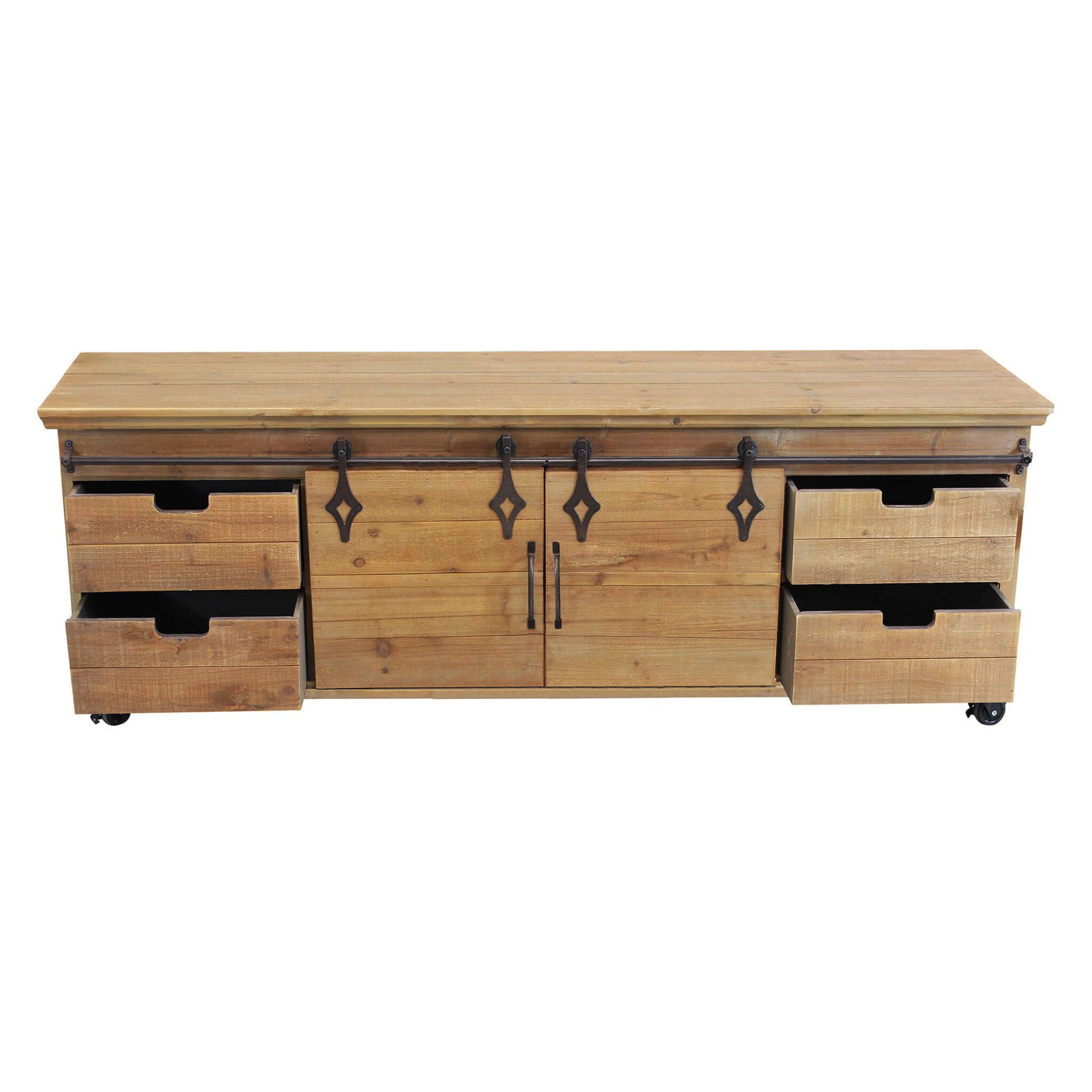 Il Porta TV per soggiorno Industrial in Legno Metallo cm 151x45x52 – HUGHIE è la scelta ideale per chi desidera arredare il proprio spazio living con carattere e funzionalità. Questo mobile unisce con maestria la robustezza dell’acciaio nero alla calda matericità del legno naturale, esprimendo in pieno lo spirito dello stile industriale. Le linee pulite e decise si arricchiscono di dettagli distintivi come il sistema di scorrimento a binario in metallo, ispirato ai meccanismi delle porte scorrevoli vintage, che dona un tocco autentico e di grande impatto visivo. I sei cassetti laterali, insieme al vano centrale chiuso da ante, garantiscono un’ampia capacità contenitiva per organizzare dispositivi elettronici, cavi, accessori e molto altro. Le ruote alla base, discrete ma funzionali, permettono di spostare facilmente l’arredo secondo le esigenze. Il Porta TV HUGHIE si inserisce perfettamente in soggiorni dallo stile urban, loft contemporanei o ambienti dallo spirito rustico-chic, diventando subito protagonista grazie alla sua presenza materica e al suo design originale. Un mobile pratico e raffinato che unisce estetica e versatilità per completare con personalità ogni zona giorno.