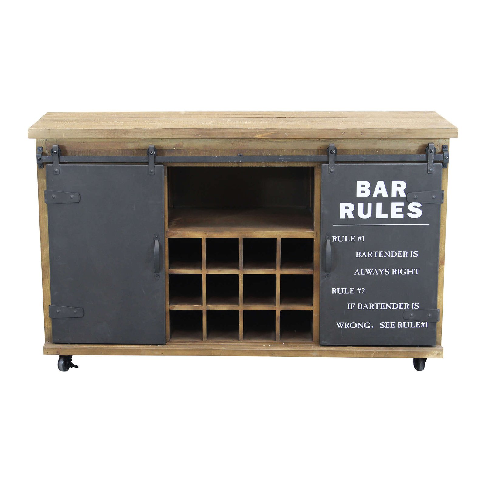 La madia con portabottiglie in legno e acciaio LUCIUS rappresenta un perfetto equilibrio tra funzionalità e stile industriale, ideale per arricchire l’arredo casa con carattere e personalità. Realizzata con una solida struttura in legno dal caldo tono marrone e dettagli in acciaio antracite, si distingue per il design grintoso e deciso, esaltato dalle due ante scorrevoli in metallo effetto lavagna, una delle quali decorata con la scritta “BAR RULES” che aggiunge un tocco ironico e originale. Dotata di ben 13 ripiani ben distribuiti, offre spazio organizzato per bottiglie, bicchieri e accessori, rendendola perfetta come mobile portabottiglie per soggiorni moderni, angoli bar o ambienti open space dal gusto urban. Le ruote alla base facilitano lo spostamento, aumentando la praticità d’uso senza comprometterne l’estetica. Le dimensioni compatte (123x41x74 cm) la rendono versatile anche in spazi contenuti, mentre lo stile industrial chic e i materiali robusti e autentici ne fanno un pezzo d’arredo distintivo. La madia LUCIUS trova la sua massima espressione in contesti conviviali, dove diventa il fulcro di serate all’insegna della condivisione e del buon gusto.