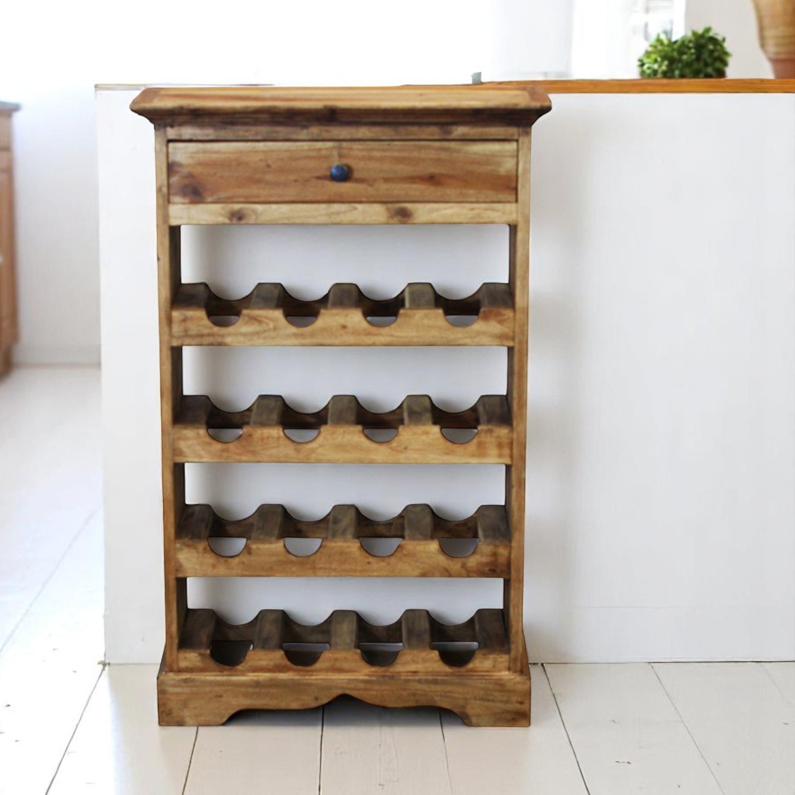 Il Mobile cantinetta porta bottiglie – PYRRHA è una raffinata soluzione d’arredo pensata per aggiungere stile e funzionalità agli ambienti più eleganti. Realizzata interamente in legno di mogano, questa cantinetta fissa presenta una finitura marrone naturale che esalta le venature del legno, trasmettendo un senso di autenticità e calore tipico dello stile arte povera. Le dimensioni contenute (55 cm di larghezza, 23 cm di profondità e 85 cm di altezza) la rendono perfetta per essere collocata in spazi anche ridotti, integrandosi con discrezione e carattere in ristoranti dallo stile classico o rustico. Il design include ripiani sagomati per ospitare ordinatamente le bottiglie e un pratico cassetto superiore con pomello in metallo nero, ideale per piccoli accessori o strumenti da sommelier. L’essenza del mobile PYRRHA risiede nella qualità artigianale del legno e nella sua capacità di evocare atmosfere calde e accoglienti, diventando non solo un contenitore per bottiglie, ma un vero e proprio elemento decorativo. Ideale per arricchire l’esperienza di degustazione, trova la sua massima espressione in sale da pranzo, enoteche e ristoranti dove il gusto per l’arredo si fonde con la passione per il vino.