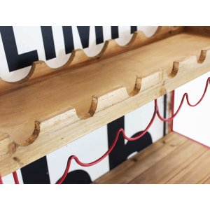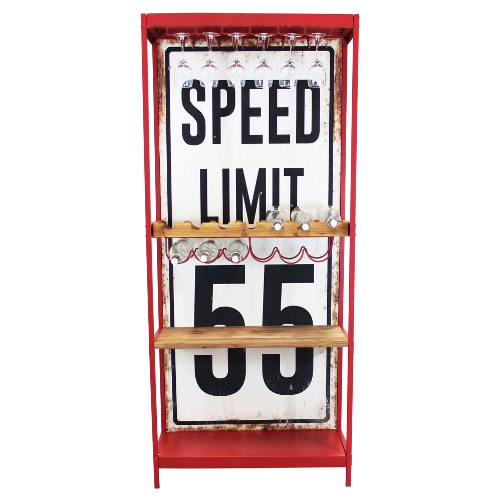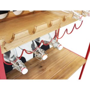 Il *Mobile con portabottiglie in Legno Metallo cm 80.5x37x152.5 – RODOLPH* è la scelta perfetta per chi desidera un elemento d’arredo funzionale e dal forte impatto visivo. Realizzato in solido legno e acciaio verniciato, unisce la robustezza dei materiali industriali all’eleganza di uno stile urban vintage inconfondibile. La struttura in metallo rosso vivace incornicia pannelli decorativi con una grafica ispirata ai cartelli stradali americani, conferendo al mobile un carattere deciso e originale. I ripiani in legno naturale aggiungono calore e contrasto cromatico, mentre i supporti per calici e bottiglie integrati lo rendono impeccabile per l’organizzazione e l’esposizione degli accessori da vino. Con dimensioni generose di 80,5 x 37 x 152,5 cm, il modello RODOLPH si adatta perfettamente a cucine moderne, soggiorni dal gusto industriale o ambienti open space arredati con stile e personalità. Pensato per chi ama ricevere con stile o semplicemente godersi un angolo bar di design in casa propria, questo mobile portabottiglie diventa protagonista di convivialità e carattere in ogni spazio.