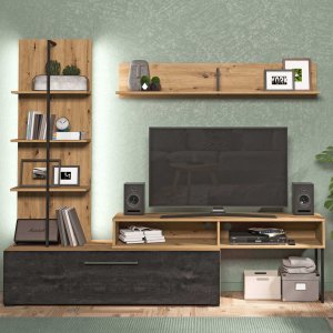 La parete attrezzata con anta e mensola moderna minimal in legno cm 205 x 41,5 x 173 h – BOSTIC è la scelta ideale per chi desidera arredare il soggiorno con carattere e funzionalità, senza rinunciare a uno stile essenziale e contemporaneo. Realizzata in resistente truciolare bilaminato, un materiale pratico e durevole, si distingue per la raffinata combinazione cromatica tra il caldo marrone effetto legno e il deciso tocco antracite degli elementi metallici, che conferiscono profondità visiva e un’eleganza industrial chic. Questa parete attrezzata moderna è composta da vani aperti, mensole e ante a ribalta che valorizzano sia l’organizzazione degli spazi sia l’aspetto estetico, con dettagli geometrici sottili e lineari che richiamano lo stile minimal nordico. Le dimensioni compatte (cm 205 x 41,5 x 173 h) la rendono perfetta per ambienti contemporanei, anche di metratura contenuta, senza compromettere la capienza e la funzionalità. Il modello BOSTIC trova la sua massima espressione in soggiorni dal design moderno, dove diventa punto focale per TV, oggettistica o libri, esprimendo un equilibrio impeccabile tra estetica e praticità quotidiana.