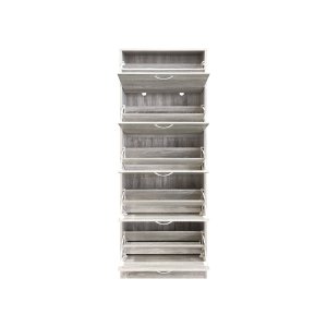 La Scarpiera 5 ante – PANDIA è una soluzione d’arredo moderna e raffinata, pensata per offrire ordine e funzionalità con uno stile essenziale ma elegante. Realizzata in resistente truciolare bilaminato, si distingue per la finitura effetto legno chiaro che dona luce e armonia all’ambiente, adattandosi perfettamente sia a spazi residenziali che professionali, come camere d’albergo o ingressi di hotel. Le sue cinque ante a ribalta enfatizzano un design verticale compatto (24 cm di profondità), ideale per ottimizzare anche gli spazi più ridotti senza rinunciare alla capacità contenitiva. Le maniglie sagomate in metallo, dal profilo discreto e contemporaneo, aggiungono un tocco di praticità e stile. Perfetta per ambienti moderni, la scarpiera PANDIA consente di organizzare le calzature in modo ordinato, elevando esteticamente l’arredo della casa o della struttura ricettiva, grazie alla sua linea pulita e al tono neutro versatile. Ideale in ingresso, corridoio o guardaroba, regala un’esperienza d’uso funzionale e gradevole, valorizzando ogni spazio con equilibrio ed eleganza.