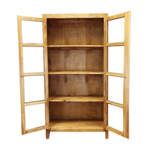 La **Vetrina in legno rustico 4 ripiani – CHRYSANTHEMUM** è una raffinata soluzione d’arredo dallo stile arte povera, perfetta per impreziosire ambienti con un gusto autentico e senza tempo. Realizzata interamente in massello di mogano, si distingue per la robustezza dei materiali e la cura artigianale dei dettagli. Il colore marrone caldo esalta la venatura naturale del legno, conferendo al mobile un’estetica rustica e accogliente. Le ante a vetro, suddivise in pannelli con struttura a griglia, permettono di esporre oggetti decorativi, libri o collezioni con eleganza, proteggendoli dalla polvere grazie alla chiusura a battente discreta e funzionale. Le dimensioni generose (cm 100 x 42 x 195 h) e i quattro ripiani interni offrono un’elevata capienza, rendendo questo mobile in legno ideale per l’arredo casa ma anche per ambienti più sofisticati come un hotel di charme o una casa vacanze in stile country. La vetrina CHRYSANTHEMUM trova la sua massima espressione in contesti caldi e tradizionali, portando con sé il fascino rustico di un’eleganza semplice ma ricercata.