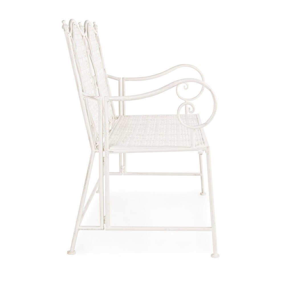 La Panca 2 Posti Acciaio Bianco Vintage da Esterno – IRENE rappresenta un’elegante combinazione tra funzionalità e charme senza tempo, perfetta per valorizzare con stile sia ambienti esterni che interni. Realizzata in acciaio verniciato a polvere epossidica, questa panca pieghevole è progettata per garantire solidità e resistenza agli agenti atmosferici, mantenendo inalterato nel tempo il suo raffinato aspetto. Il suo design vintage, caratterizzato da linee morbide, decorazioni a ricciolo e schienale con motivi geometrici intrecciati, richiama l’estetica romantica del ferro battuto, perfetta per arredamenti in stile shabby chic, provenzale o classico. La finitura bianca opaca dona luminosità e leggerezza, rendendola ideale per giardini, terrazze, verande o ingressi dallo stile curato. La struttura pieghevole facilita inoltre lo spostamento e il rimessaggio, offrendo la massima praticità. La Panca IRENE non è solo una seduta, ma un vero elemento d’arredo che invita alla convivialità e alla quiete, riportando alla mente atmosfere rilassate e accoglienti in ogni spazio in cui viene collocata.