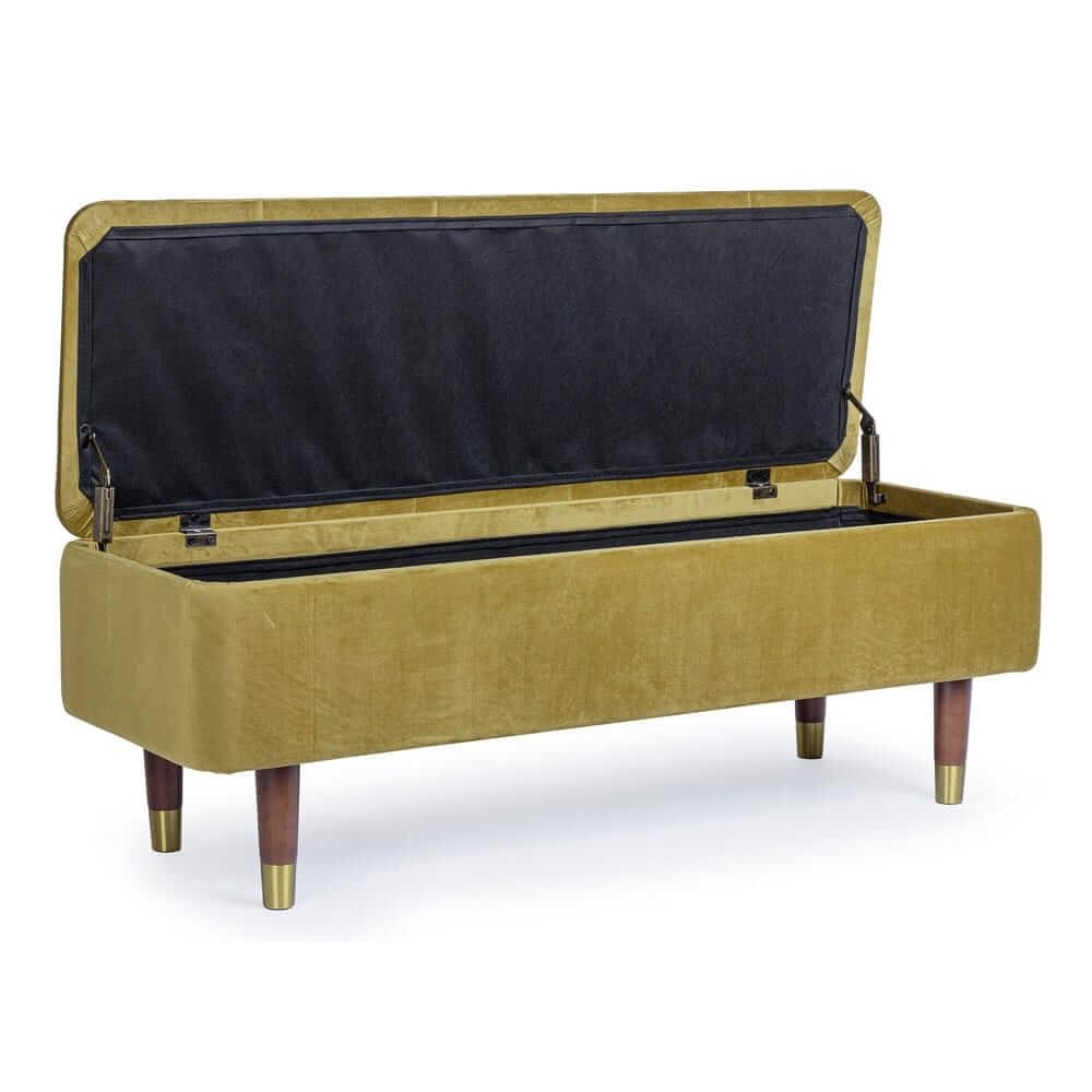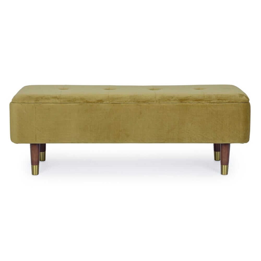 La Panca Contenitore Verde Stile Moderno da Interno – MARINA è un complemento d’arredo elegante e funzionale, ideale per valorizzare ambienti contemporanei con un tocco di raffinatezza. Il design lineare dalle forme morbide è esaltato da un rivestimento in poliestere effetto velluto di colore verde, che dona profondità cromatica e una sensazione tattile piacevolmente morbida al tatto. La struttura interna in MDF e compensato garantisce robustezza e durabilità, mentre le gambe affusolate in legno rubber wood con finali in acciaio verniciato oro donano un contrasto sofisticato e decorativo. Il vano contenitore, discreto ma capiente, offre una soluzione pratica per riporre plaid, cuscini o altri oggetti, mantenendo l’ordine con stile. Perfetta come seduta aggiuntiva in soggiorno, ai piedi del letto in camera o all’ingresso, la panca MARINA unisce estetica e utilità, esprimendo al meglio il proprio valore in ambienti moderni che non rinunciano al comfort.