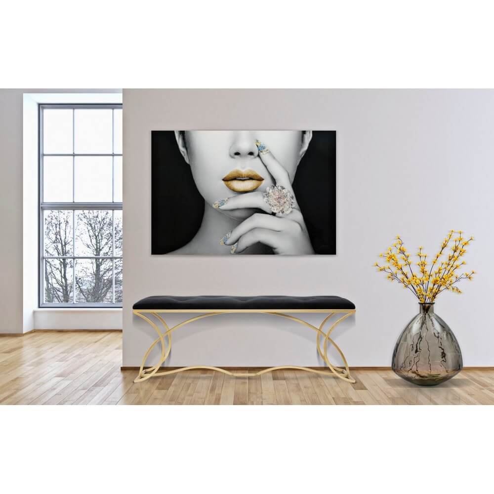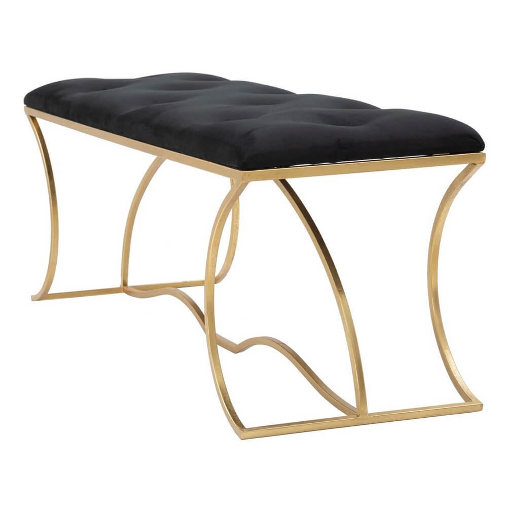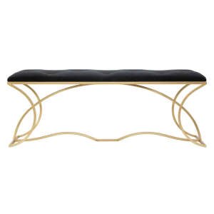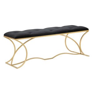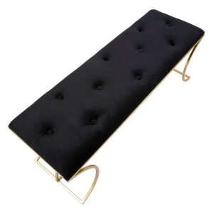 Elegante panchetta in metallo dorato e velluto nero dalle linee morbide e sinuose. L’eleganza del velluto si fonde con il design del metallo dorato per rendere speciale ogni ambiente.