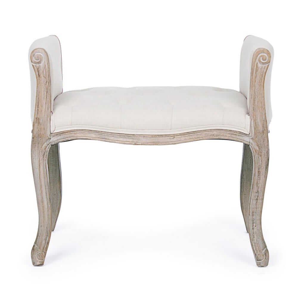 Il Set 2 Panche Legno Bianco Stile Rustico da Interno – GRETA è la scelta perfetta per chi desidera arricchire i propri ambienti con un tocco di eleganza senza tempo unito alla calda personalità dello stile rustico. Ogni panca si distingue per la raffinata struttura in rubber wood con finitura decapata che esalta l’aspetto artigianale del legno, mentre il morbido rivestimento in tessuto misto (40% poliestere, 30% cotone, 30% lino) in delicato tono bianco dona luminosità e comfort. Il design armonioso con gambe sinuose e braccioli leggermente curvati richiama linee classiche reinterpretate in chiave shabby chic, perfette per arredare con gusto zone giorno, ingressi, camere da letto o spazi lettura. L’equilibrio tra solidità costruttiva e leggerezza visiva rende le panche GRETA ideali per completare l’arredo con stile e funzionalità, offrendo una seduta accogliente e decorativa. Questo set valorizza al meglio contesti interni dove si desidera un’atmosfera intima e raffinata, capace di coniugare estetica e praticità in modo armonioso.