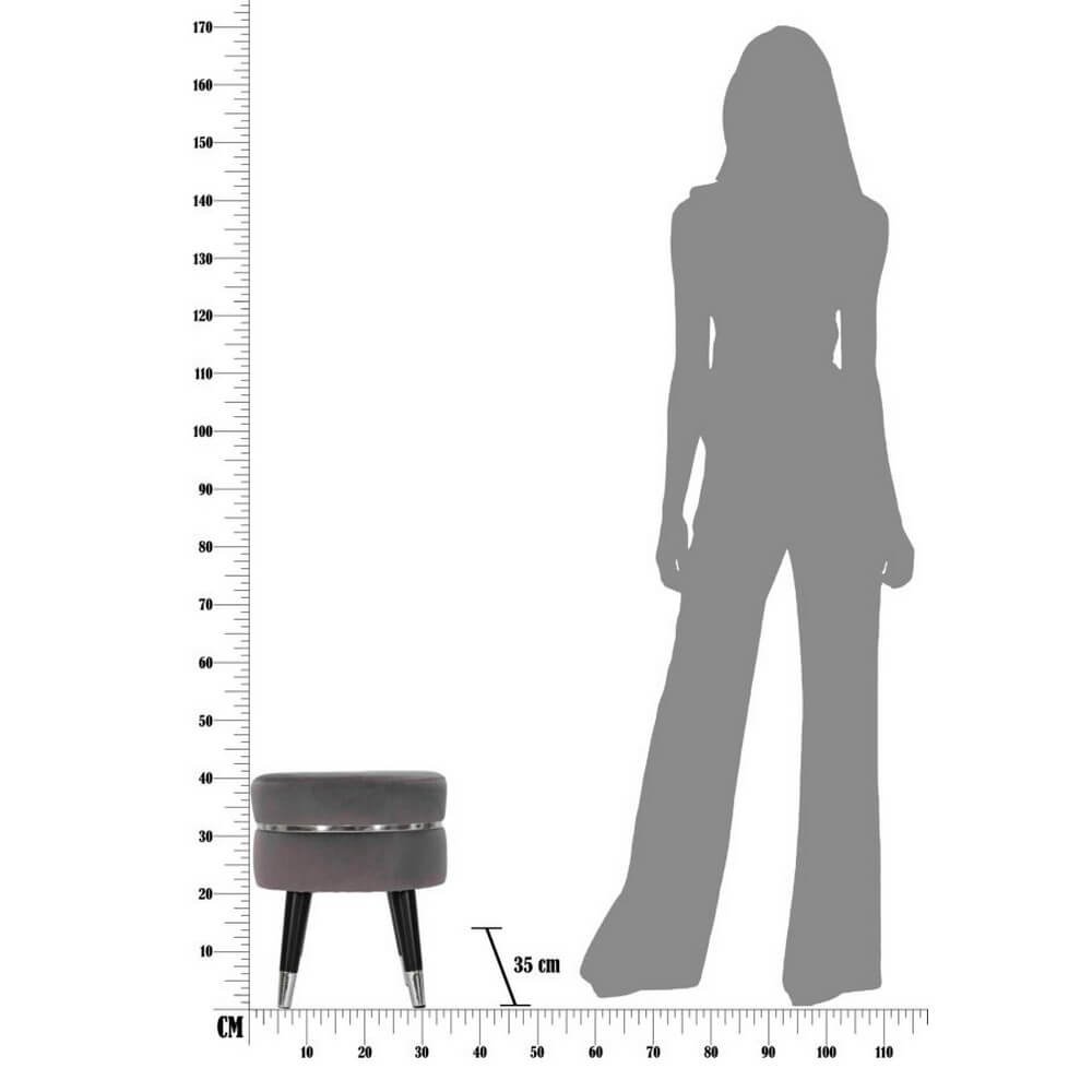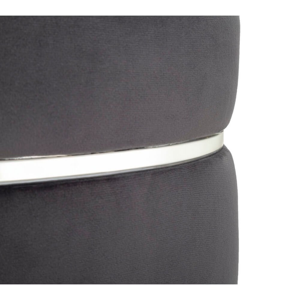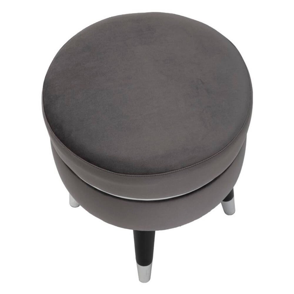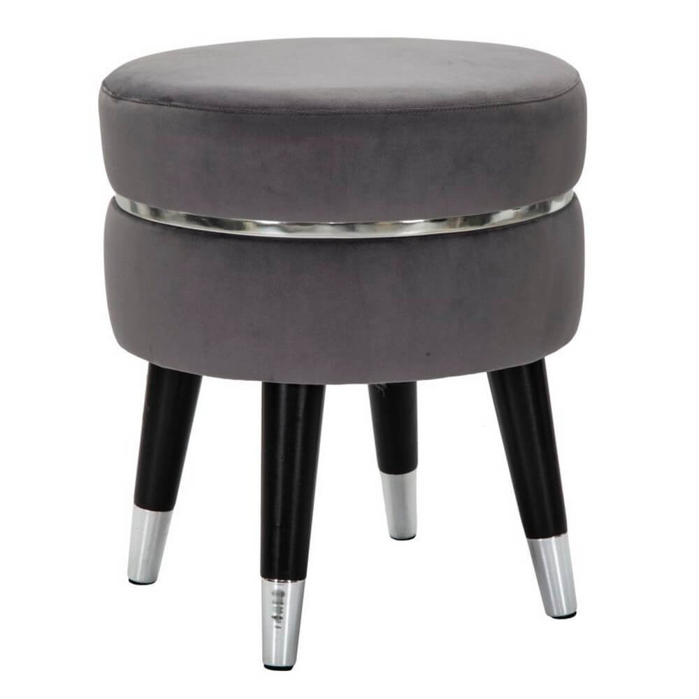 Sgabello in legno e velluto grigio. Sedute dalla finitura argento che si ispirano ai camerini delle grandi dive di Hollywood. Ideali da collocare in camera da letto o in salotto per sentirsi delle star.
