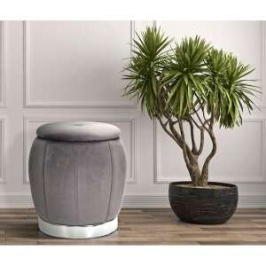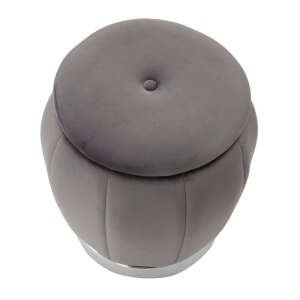 Pouf contenitore in legno e velluto grigio. Sedute dalla finitura argento che si ispirano ai camerini delle grandi dive di Hollywood. Ideali da collocare in camera da letto o in salotto per sentirsi delle star.