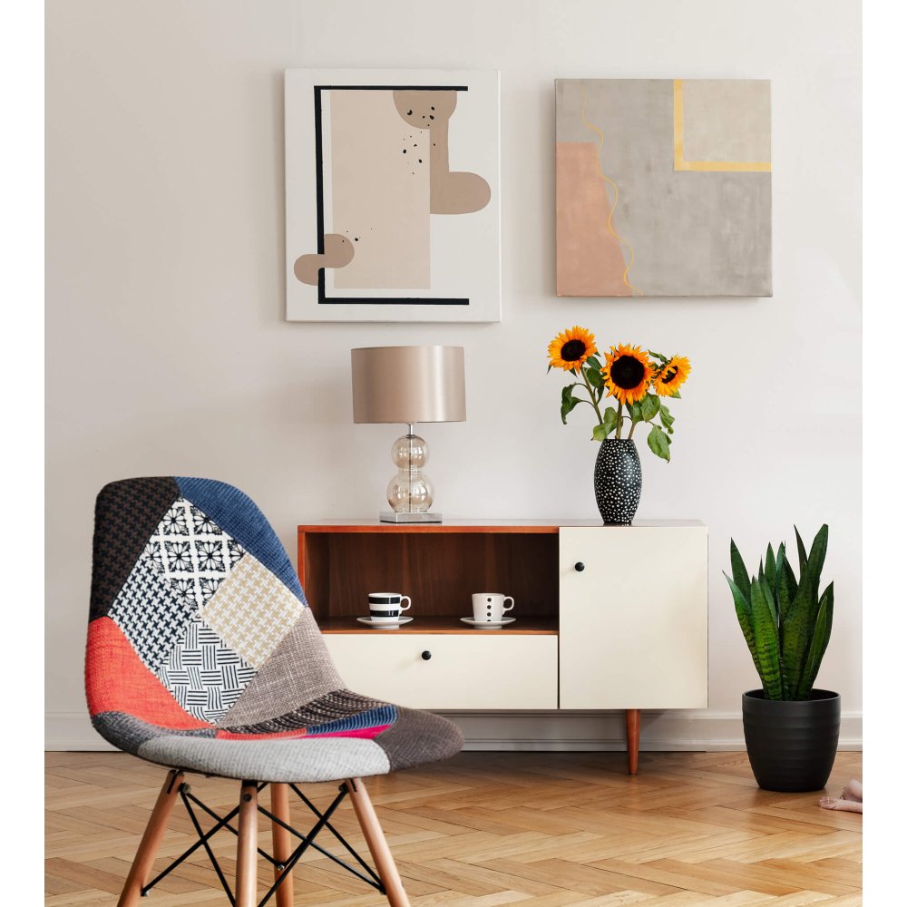 La Sedia Scandinava Patchwork in Legno Acciaio Tessuto cm 46,5x53x83 – JOBY è una soluzione d’arredo che unisce funzionalità, comfort e uno stile moderno dal forte impatto visivo. Il design contemporaneo si distingue per la vivace seduta multicolor in tessuto con fantasia a quadri, realizzata attraverso una composizione patchwork che alterna texture e toni caldi e freddi, donando personalità a qualsiasi ambiente. La struttura combina sapientemente materiali resistenti come il metallo per il supporto interno e le gambe in legno naturale, assicurando stabilità, durata e un piacevole contrasto estetico. Priva di braccioli e dalle dimensioni compatte, questa sedia è perfetta per arredare con originalità la zona living, la sala da pranzo o uno studio moderno. La particolare combinazione di colori e materiali rende la Sedia JOBY non solo un elemento funzionale per la casa, ma anche un pezzo decorativo capace di esprimere gusto e creatività. Ideale per chi cerca un tocco scandinavo con un’anima vivace, si inserisce armoniosamente in spazi che valorizzano la personalità e l’originalità del design.