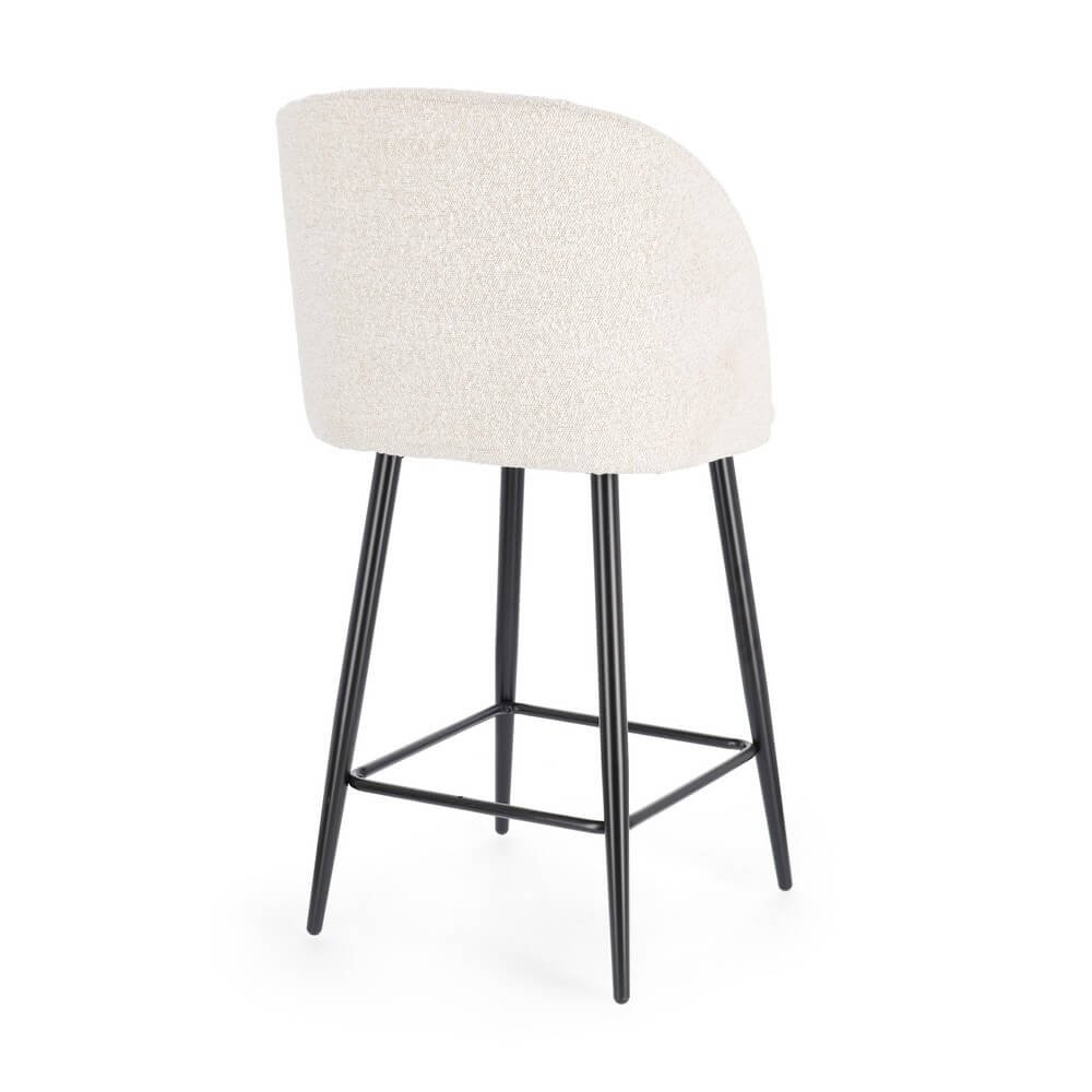 Eleganza morbida e stile contemporaneo si fondono perfettamente nello sgabello da cucina FELICIA, proposto qui in una raffinata versione con rivestimento effetto bouclé chiaro e gambe sottili in acciaio nero verniciato a polvere. Il design moderno dalle linee avvolgenti e il comfort dell’imbottitura in schiuma poliuretanica offrono una seduta accogliente e sofisticata, ideale per ambienti interni come cucine con isola o moderni open space. La struttura in compensato garantisce leggerezza e stabilità, mentre il rivestimento bouclé, composto da una miscela di poliestere e acrilico, dona texture visiva e sensoriale, esaltando l’aspetto contemporaneo con un tocco di calore materico. Perfetto per completare un arredo casa dal gusto moderno o scandinavo, questo sgabello si distingue per il suo equilibrio tra forma e funzionalità. FELICIA esprime al meglio il suo valore nei momenti di convivialità quotidiana, valorizzando ogni angolo della cucina con stile e comfort.