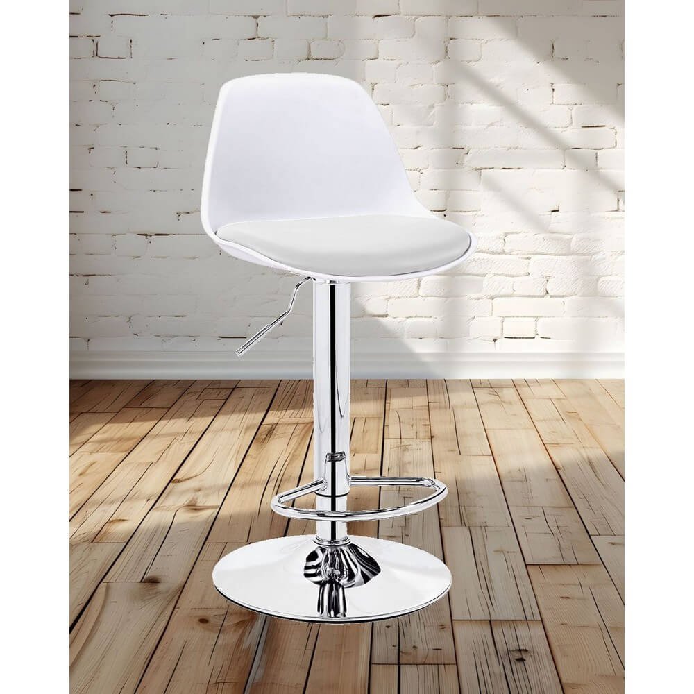 Sgabello a gas ed ecopelle – Nareon unisce eleganza contemporanea e funzionalità per ambienti interni. La base circolare in acciaio cromato con poggiapiedi integrato assicura stabilità e un look brillante, mentre il pistone a gas consente la regolazione dell’altezza da 86 a 104 cm per adattarsi a isole, penisole e piani snack. La seduta in polipropilene bianco lucido con cuscino in ecopelle bianca offre comfort morbido e pulizia rapida; lo schienale sagomato sostiene senza appesantire la linea. Le misure compatte L 40 x P 40 ottimizzano lo spazio, rendendo lo sgabello ideale per cucine, living e angoli bar domestici in stile moderno. Materiali resistenti come acciaio, polipropilene ed ecopelle garantiscono praticità e durata, con finitura bianco lucido e dettagli cromati che illuminano l’ambiente. Perfetto come sgabello da cucina regolabile, valorizza i momenti quotidiani: dal caffè al bancone agli aperitivi in compagnia, sempre con comfort e stile.