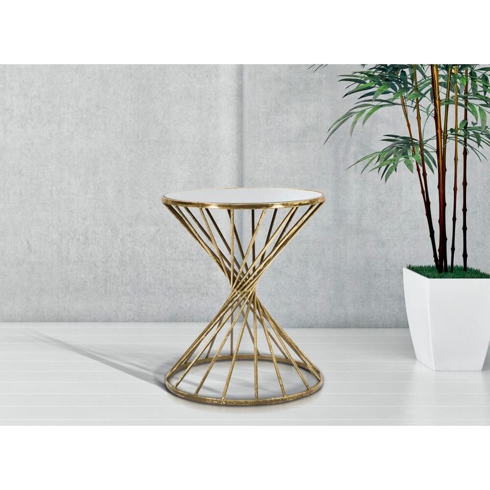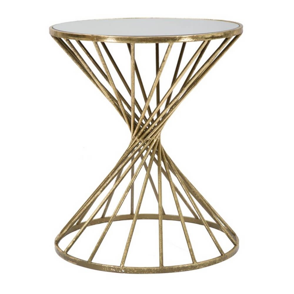 Tavolinetto rotondo in metallo e vetro. Il dorato abbinato al vetro crea un forte impatto. Un elemento lussuoso e glam per la tua casa