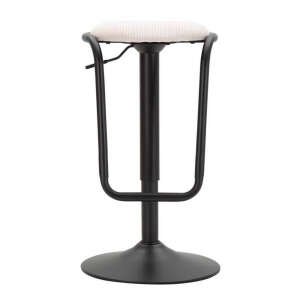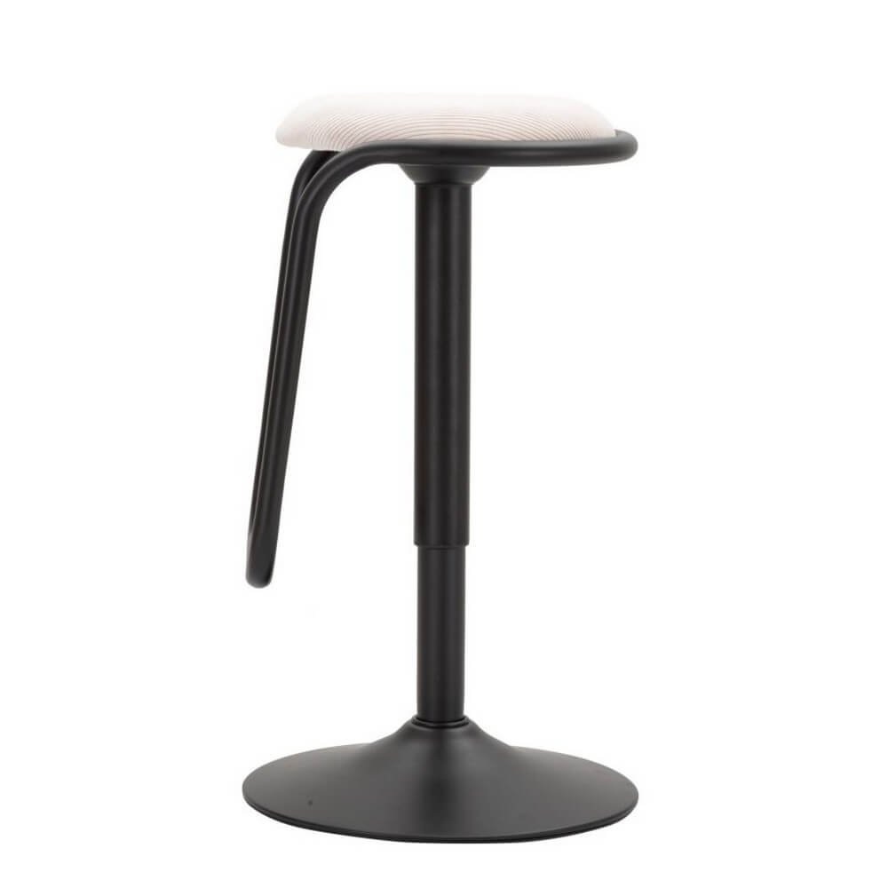 Sgabello bar rotondo girevole in metallo e tessuto imbottito. Completo di regolatore d’altezza. Il design semplice richiama gli anni ’70.
