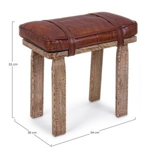 Lo sgabello in pelle marrone rustico da interno – ROSA è un complemento d’arredo che unisce sapientemente estetica vintage e materiali di alta qualità, offrendo una seduta dal carattere deciso e autentico. La struttura è realizzata in resistente legno di mango con finitura vissuta, che esalta la texture naturale e aggiunge un fascino tipicamente artigianale. La seduta, imbottita in schiuma poliuretanica, è rivestita in pregiata pelle di bufalo marrone, con una finitura calda e leggermente vissuta che conferisce un look raffinato d’ispirazione industriale. Due robuste fasce di pelle sul cuscino richiamano elementi storici delle sedute d’officina, donando personalità e solidità visiva all’intero arredo. Ideale in ambienti interni come soggiorni, camere da letto o ingressi dal gusto rustico, country o industrial chic, lo sgabello ROSA si distingue per comfort, stile e autenticità. Perfetto come seduta d’appoggio, poggiapiedi o elemento decorativo, arricchisce l’ambiente con un tocco caldo e accogliente, offrendo un’esperienza d’uso che fonde funzionalità ed emozione estetica.