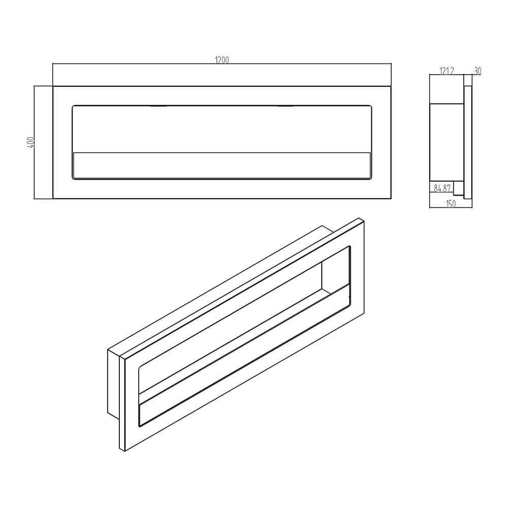 DIVINA FIRE Camino a bioetanolo a parete LIVORNO 120