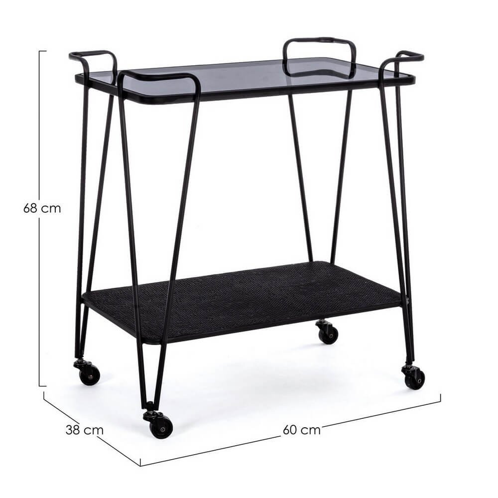 Il Carrello Vetro Nero Moderno da Interno – MIRIAM è la soluzione perfetta per aggiungere un tocco di design contemporaneo e funzionalità pratica ai tuoi spazi interni. Dal profilo essenziale e raffinato, questo elegante complemento d’arredo unisce la leggerezza visiva del vetro temperato alla robustezza della struttura in acciaio verniciata a polvere epossidica, sottolineando uno stile moderno ed estremamente attuale. Il colore nero, protagonista assoluto, conferisce un carattere deciso e sofisticato, ideale per ambienti living dal gusto minimal, industrial o urban chic. Dotato di ruote girevoli per la massima praticità, MIRIAM si rivela perfetto come carrello da servizio per aperitivi, tea time o come originale consolle mobile per esporre oggetti decorativi. Le linee pulite e geometriche, abbinate alla trasparenza del vetro superiore e alla texture materica del ripiano inferiore, creano un interessante gioco di contrasti che valorizza lo spazio circostante. Il Carrello MIRIAM trova la sua massima espressione d’uso in salotti moderni, open space contemporanei o angoli conversazione dove lo stile incontra la funzionalità.