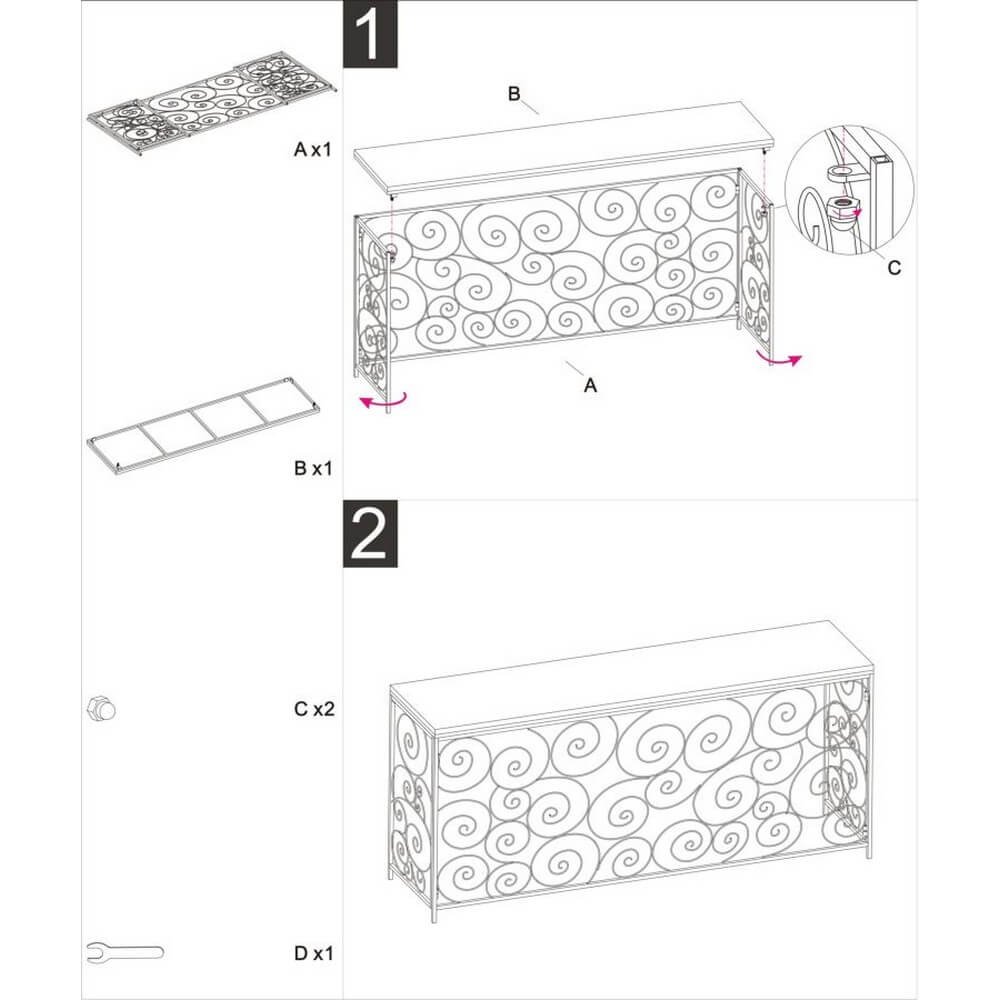 Console rettangolare in metallo dorato impreziosita dal piano in marmo bianco. Le particolari e morbide decorazioni geometriche donano un tocco di ricercatezza ad ogni ambiente.