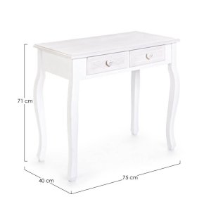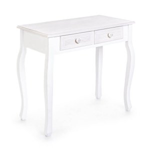 La Consolle 2 Cassetti Legno Bianco Shabby da Interno – CAROLINE incarna l’eleganza romantica dello stile shabby chic, ideale per impreziosire ambienti interni con un tocco di raffinatezza vintage. Realizzata in legno MDF con una delicata finitura a base d’acqua, questa consolle si distingue per le linee morbide e sinuose delle gambe e per l’accurata lavorazione frontale dei cassetti, impreziositi da pomelli in poliresina decorati con cuori in rilievo. Il colore bianco, leggermente sfumato, dona un effetto vissuto che richiama la tradizione artigianale, rendendola perfetta per arredare ingressi, camere da letto o angoli lettura con gusto e semplicità. I due cassetti offrono uno spazio pratico e discreto per riporre piccoli oggetti, unendo funzionalità e stile. La consolle CAROLINE si inserisce armoniosamente in ambienti classici, provenzali o country chic, contribuendo a creare atmosfere accoglienti e luminose. Ideale per chi desidera un elemento d’arredo che unisca estetica e utilità quotidiana, esprime il suo massimo valore quando collocata in spazi dove ogni dettaglio parla di cura e personalità.