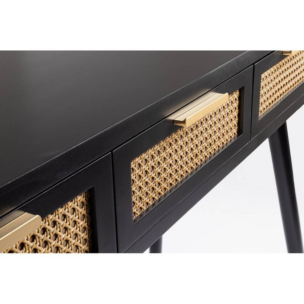 La Consolle Legno Nero Industriale da Interno – JOSIE è un irresistibile connubio di design contemporaneo e richiami naturali, perfetta per completare con stile gli ambienti casa. Il suo profilo slanciato e minimalista, scandito da gambe in legno di pino affusolate in finitura nera, incarna l’eleganza dell’arredo industrial chic. La struttura è interamente realizzata in MDF, con tre cassetti che catturano subito l’attenzione grazie agli inserti in rattan naturale, dettagli visivi distintivi che aggiungono calore e matericità, trasformando la funzionalità in espressione decorativa. Le maniglie in acciaio satinato valorizzano ulteriormente il contrasto tra elementi moderni e artigianali. Ideale come tavolo da ingresso, console da soggiorno o postazione smart working dal gusto ricercato, la Consolle JOSIE unisce estetica e praticità senza compromessi. Grazie alla sua capacità di integrarsi armoniosamente in contesti interni dal carattere urbano, boho o nordico, valorizza ogni spazio con un tocco di raffinatezza disinvolta.