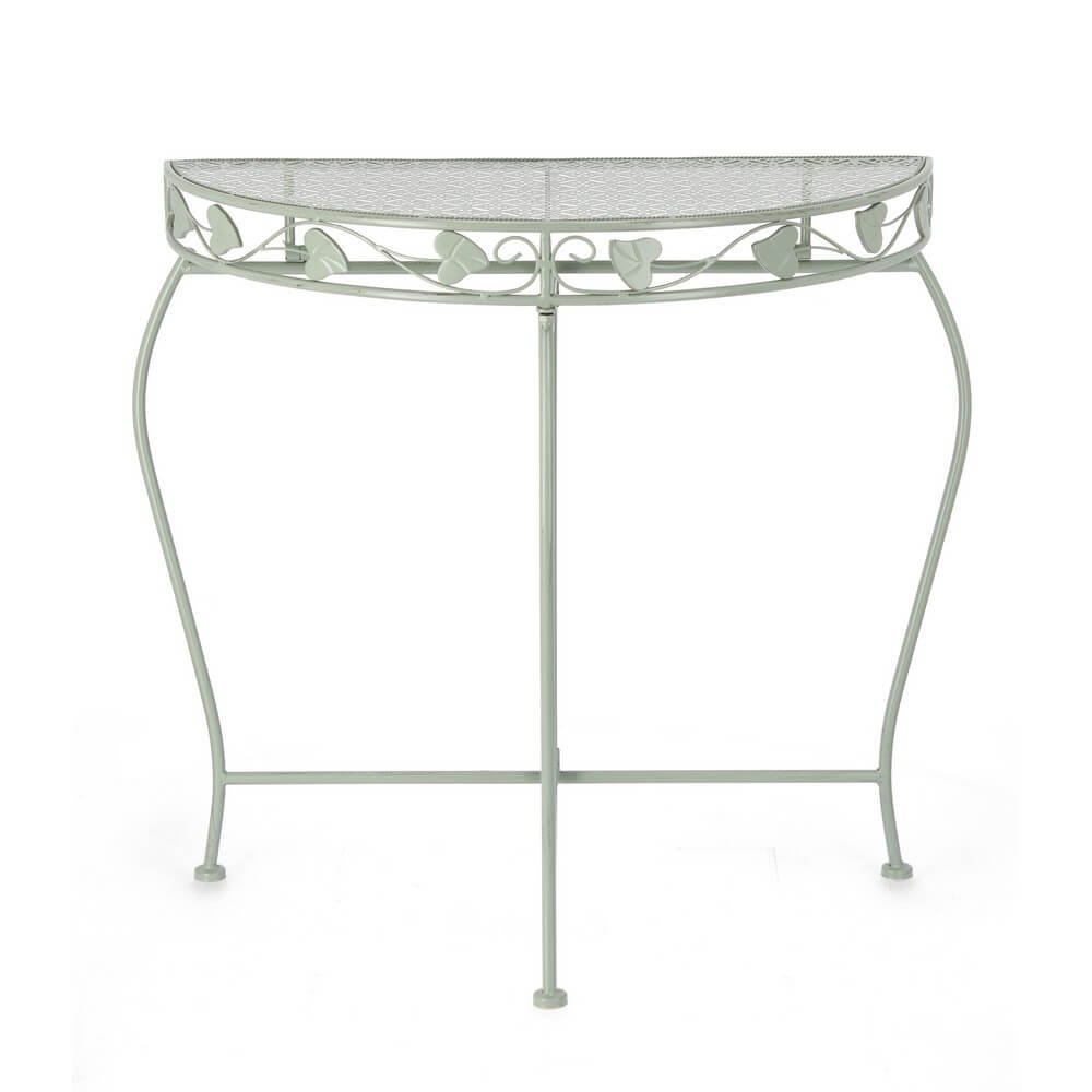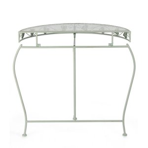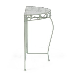 Elegante e raffinato, il Set 2 Consolle in Acciaio Verde Rustico da Interno – GIANNA è la scelta ideale per chi desidera un tocco di fascino romantico nel proprio arredo casa. Caratterizzate da una struttura in acciaio verniciato a polvere epossidica, queste consolle uniscono solidità e leggerezza visiva, con un design armonioso che si ispira allo stile vintage e shabby chic. Il colore verde rustico delicato e opaco offre una piacevole alternativa al classico bianco, mantenendo però una sensazione di luminosità e freschezza. La forma semicircolare è perfetta per valorizzare ingressi, corridoi o angoli poco utilizzati, mentre i dettagli ornamentali a motivo di foglie aggiungono un elemento decorativo distintivo e ricercato. Facili da assemblare, queste consolle sono pensate per ambienti interni, dove possono arricchire lo stile di arredamento con un tocco romantico e funzionale. Il set GIANNA esprime al meglio il proprio valore in contesti accoglienti e curati, dove ogni dettaglio contribuisce a creare un’atmosfera calda e accogliente.