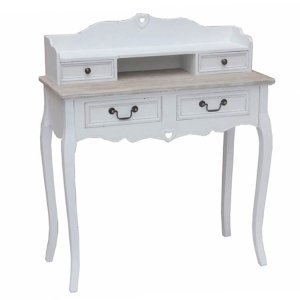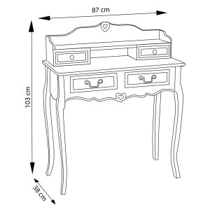 Il Scrittoio con 4 cassetti shabby chic 87×38 – WIL è l’equilibrio perfetto tra funzionalità e fascino romantico, pensato per chi desidera arredare con stile gli ambienti della propria casa. La struttura in legno di paulonia rifinita in bianco si unisce armoniosamente al piano nocciola con finitura spazzolata, come visibile nell’immagine, esaltando le venature naturali del legno e conferendo al mobile un effetto vissuto tipico dello stile shabby chic. I quattro cassetti frontali offrono praticità e spazio contenitivo, ideali per organizzare al meglio articoli di cancelleria, documenti o piccoli oggetti personali. Grazie alle dimensioni compatte (87x38x103 cm) e al design delicato, questo scrittoio fisso si adatta perfettamente a camere da letto, ingressi o zone studio, donando un tocco accogliente e raffinato. Il top in MDF impiallacciato è solido e resistente, mentre la combinazione cromatica bianco e tortora lo rende un complemento d’arredo versatile, facile da abbinare con altri elementi in legno o tessuti naturali. Il Scrittoio WIL esprime il meglio delle sue potenzialità in ambienti luminosi e curati, dove il gusto per il dettaglio incontra la funzionalità quotidiana.