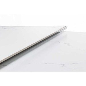 Il Tavolo Allungabile Acciaio Nero Moderno Interno 160/240×90 – ORION è la sintesi perfetta tra estetica contemporanea e funzionalità evoluta. Progettato per ambienti interni moderni ed eleganti, questo tavolo da pranzo si distingue per la sua struttura geometrica in acciaio verniciato a polvere epossidica, che dona solidità e un raffinato effetto opaco. Il piano in ceramica di alta qualità, spesso 5 mm, è sorretto da un robusto supporto in vetro temperato da 8 mm, per un connubio vincente tra leggerezza visiva e resistenza all’usura. Il contrasto tra le gambe nere dal taglio deciso e il piano effetto marmo chiaro crea un impatto visivo sofisticato, ideale per interni dal design minimale o industriale. Grazie al pratico sistema di estensione, ORION si trasforma con fluidità da 160 a 240 cm, adattandosi con versatilità a ogni occasione conviviale. Pensato per chi cerca un tavolo da pranzo moderno che coniughi forma e funzione, questo pezzo valorizza ogni spazio con classe e personalità, offrendo un’esperienza di utilizzo confortevole e scenografica.