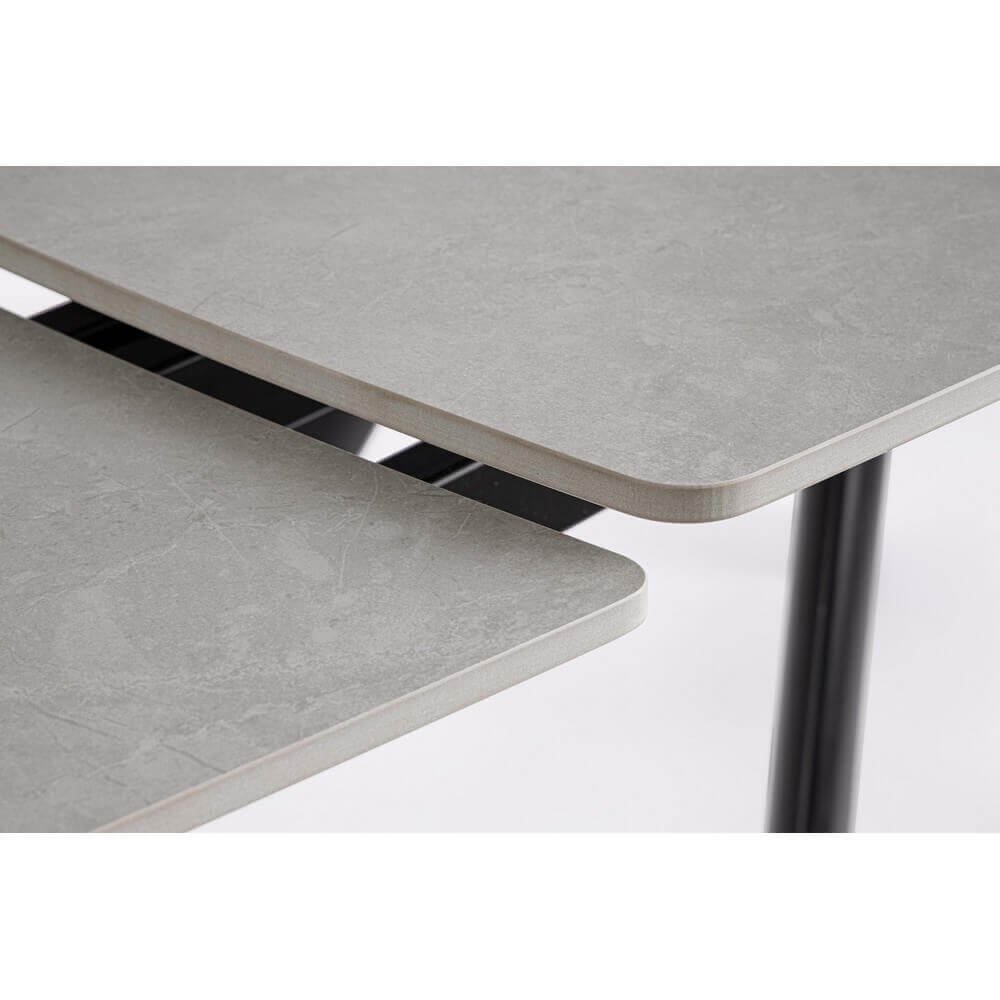 La base in acciaio verniciato a polvere epossidica garantisce solidità e resistenza, mentre il piano in gres porcellanato effetto marmo aggiunge un tocco di raffinatezza e luminosità, mantenendo al tempo stesso una superficie pratica e facile da pulire.