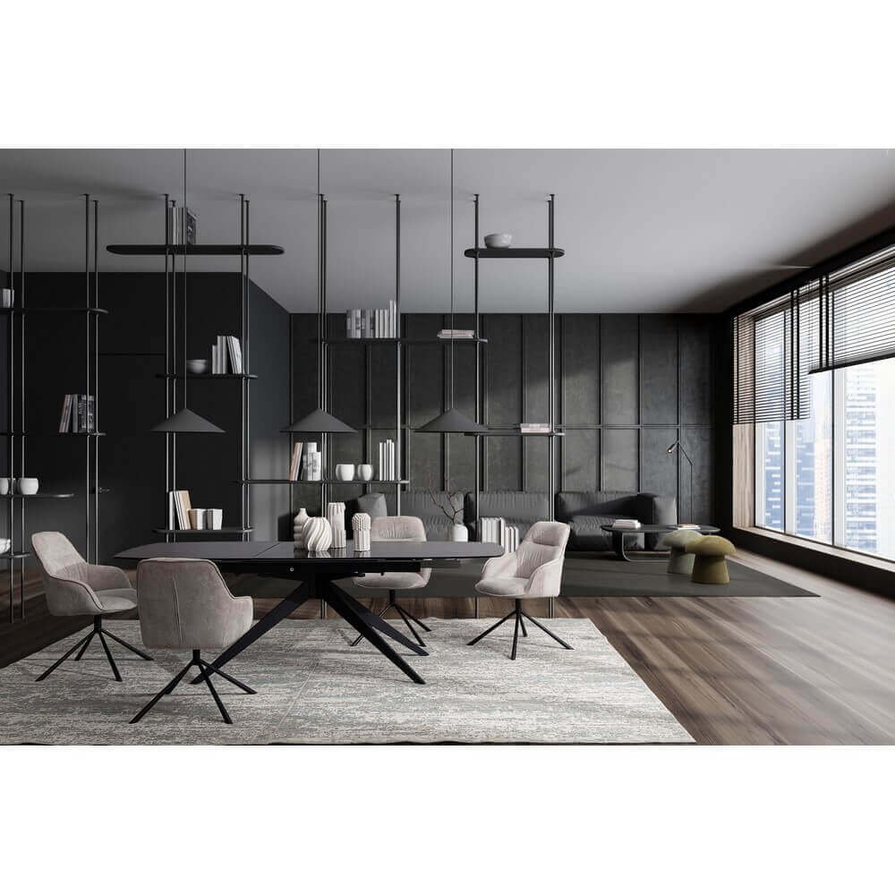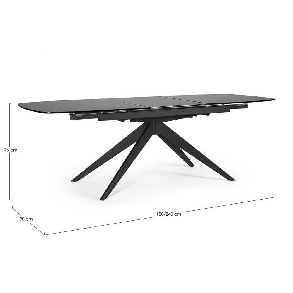 Il Tavolo da Pranzo Acciaio Nero Moderno Interno 180-240×90 – ANJA è un’autentica espressione di design contemporaneo, pensato per chi desidera arredare la propria zona pranzo con eleganza e funzionalità. Realizzato con una solida struttura in acciaio verniciato a polvere epossidica, presenta linee essenziali ma distintive, con una base a razze inclinate che dona carattere e grande stabilità. Il piano in vetro temperato nero, sagomato e spesso, aggiunge un tocco di raffinatezza e leggerezza visiva, riflettendo la luce in modo discreto e valorizzando gli spazi con sobria eleganza. ANJA è allungabile tramite un pratico meccanismo di estensione che permette di passare con facilità da 180 a 240 cm, ospitando fino a 10 persone con il massimo comfort. Ideale per ambienti moderni e open space, questo tavolo da pranzo è perfetto per accogliere sia momenti conviviali quotidiani che occasioni speciali, diventando il fulcro estetico e funzionale del living. Il tavolo da pranzo ANJA unisce materiali di alta qualità, design ricercato e versatilità d’uso, offrendo un’esperienza d’arredo superiore per chi ama vivere la casa con stile.