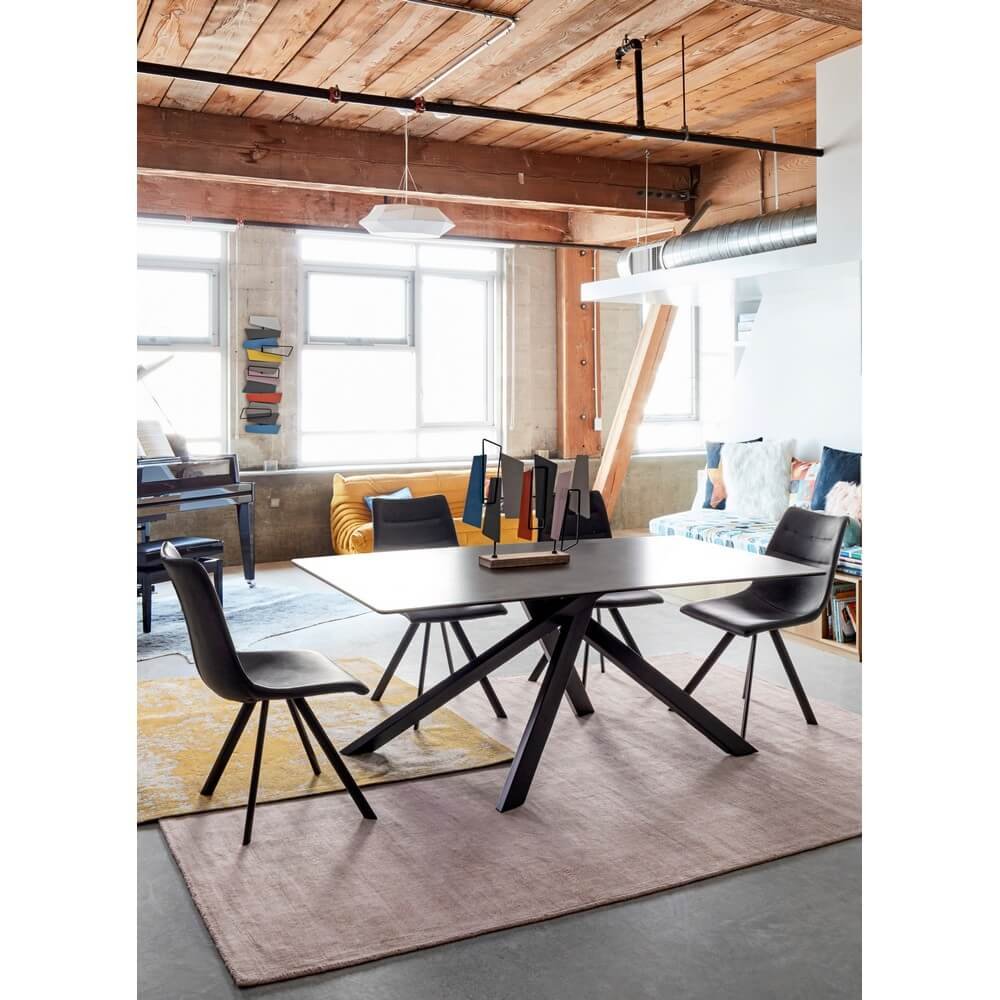Il Tavolo Ceramica Nero Moderno da Interno 180×90 cm – KATE è la soluzione perfetta per chi desidera coniugare design contemporaneo ed eleganza senza tempo all’interno della propria zona pranzo. Il piano in ceramica nera opaca da 5 mm, supportato da un solido strato in vetro temperato da 8 mm, offre una superficie raffinata, resistente e facile da pulire, ideale per un uso quotidiano ma anche per occasioni speciali. Le gambe geometriche in acciaio verniciato a polvere epossidica creano un gioco dinamico di incroci dal forte impatto visivo, conferendo stabilità e un carattere scultoreo al tavolo. La finitura nera, sobria e sofisticata, si adatta perfettamente a interni moderni, minimalisti o industrial, valorizzando l’ambiente con uno stile deciso e ricercato. Pensato per arredare con gusto soggiorni, sale da pranzo o ambienti open space, il tavolo KATE rappresenta non solo un elemento funzionale ma anche un vero e proprio statement estetico. L’esperienza d’uso è quella di un arredo che unisce bellezza formale, qualità dei materiali e praticità, offrendo il massimo comfort attorno alla convivialità di ogni pasto.