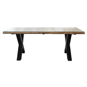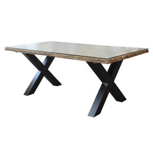 Il Tavolo da pranzo 200×100 – VIRIDIA è una raffinata espressione di design moderno che unisce matericità autentica e funzionalità contemporanea. Progettato per ambienti eleganti come hotel o abitazioni di prestigio, questo tavolo fisso si distingue per il suo piano in legno ferroviario riciclato, valorizzato da una superficie in vetro temperato che ne esalta le venature naturali e gli conferisce solidità e protezione. La struttura in acciaio antracite con gambe a incrocio, dal forte impatto visivo, conferisce al tavolo un carattere deciso e industrial chic, creando un perfetto equilibrio tra robustezza e stile. Le dimensioni generose (cm 100 x 200 x 77 h) lo rendono ideale per accogliere comodamente gli ospiti, valorizzando lo spazio con la sua presenza scenografica. Il contrasto tra il calore del legno marrone e la modernità del metallo scuro lo rende estremamente versatile, adatto sia a contesti residenziali sia contract. Il Tavolo da pranzo VIRIDIA dona un’immediata sensazione di autenticità e qualità, trasformando ogni momento conviviale in un’esperienza di design e comfort.