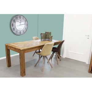 Il Tavolo da Pranzo 200×90 – PINE è una scelta di grande fascino per chi cerca un arredo funzionale e dallo stile autentico. Realizzato interamente in legno di pino riciclato, questo tavolo fisso unisce la bellezza delle venature naturali alla sostenibilità dei materiali, conferendo carattere e calore a qualsiasi ambiente domestico. Le dimensioni generose di 200 x 90 cm lo rendono perfetto per accogliere comodamente familiari e ospiti nelle occasioni conviviali, mentre l’altezza di 76 cm garantisce praticità e comfort. Il design vintage con piano lavorato a motivi geometrici regala un’eleganza discreta ma d’impatto, che dialoga perfettamente con arredi rustici, industriali o boho chic. Il colore marrone caldo e vissuto, rifinito con cura, esalta l’unicità di ogni pezzo e suggerisce una storia che continua a vivere nel presente. Il Tavolo da Pranzo 200×90 – PINE è ideale non solo per la sala da pranzo, ma anche come fulcro di un living open space, dove diventa protagonista di momenti di condivisione autentici e senza tempo.