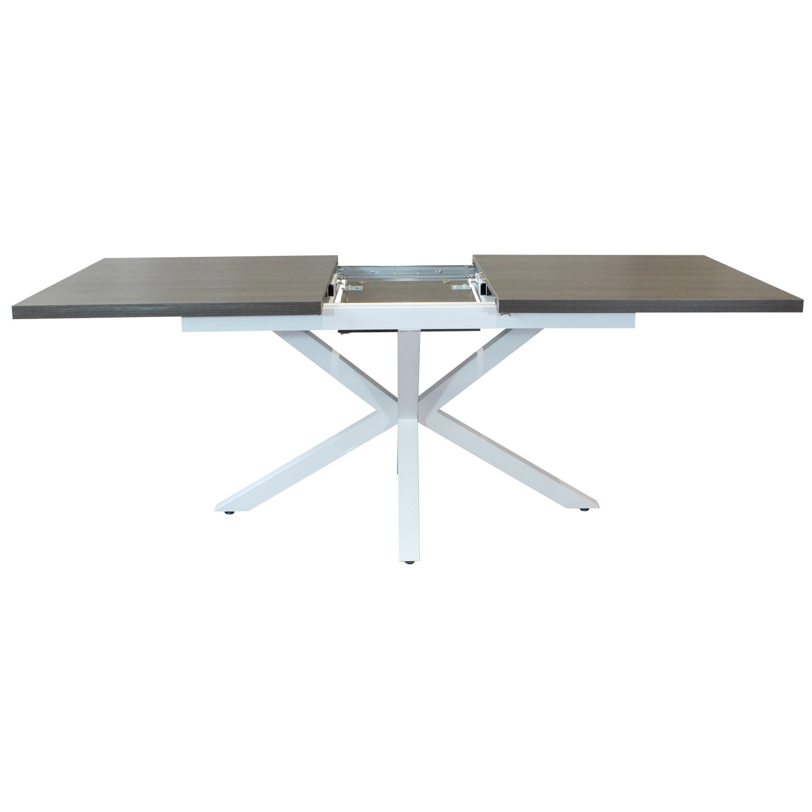 Il tavolo da pranzo allungabile 160/200×90 – THISBE è la scelta ideale per chi desidera un arredo elegante, funzionale e dallo stile moderno, perfetto sia per ambienti domestici che per ristoranti dal design contemporaneo. Caratterizzato da un raffinato piano in melamina color grigio scuro, resistente e facile da pulire, e da una solida struttura in metallo bianco con base incrociata dal forte impatto visivo, il tavolo THISBE unisce estetica e stabilità in modo impeccabile. Le linee essenziali e il contrasto cromatico tra il top effetto legno e la base in acciaio valorizzano ogni spazio con un tocco di modernità sobria e sofisticata. Grazie al pratico sistema allungabile, passa facilmente da 160 a 200 cm di lunghezza, offrendo maggiore capienza senza rinunciare allo stile, ideale per accogliere ospiti o adattarsi a esigenze di utilizzo diverse. Questo tavolo da pranzo è pensato per vivere momenti conviviali in ambienti curati, dove design e funzionalità si incontrano, esprimendo al meglio il suo valore in contesti moderni e dinamici.