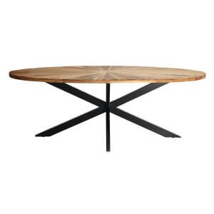 Il Tavolo da pranzo ovale in legno di acacia 220×100 cm – ATTICO unisce eleganza contemporanea e materiali naturali in un design distintivo e sofisticato, perfetto per valorizzare ambienti living o sale da pranzo dal carattere moderno e industriale. Il piano in legno massello di acacia, con la sua texture venata e il motivo a raggi intarsiato, trasmette calore e autenticità, mentre la struttura geometrica in acciaio verniciato nero dona un tocco scultoreo e urbano, assicurando al contempo solidità e stabilità. Le dimensioni generose di 220 x 120 x 77 cm offrono ampia capienza per accogliere comodamente più persone, rendendolo ideale per cene conviviali, riunioni familiari o momenti di condivisione quotidiana. Il contrasto armonioso tra il marrone caldo del legno e il nero opaco del metallo crea un impatto visivo deciso ma equilibrato, adatto ad arredare con gusto sia contesti residenziali che spazi open space. Il tavolo ATTICO esprime al meglio il suo valore in contesti moderni o industrial chic, dove qualità artigianale e design si fondono per creare un’esperienza d’arredo autentica e raffinata.