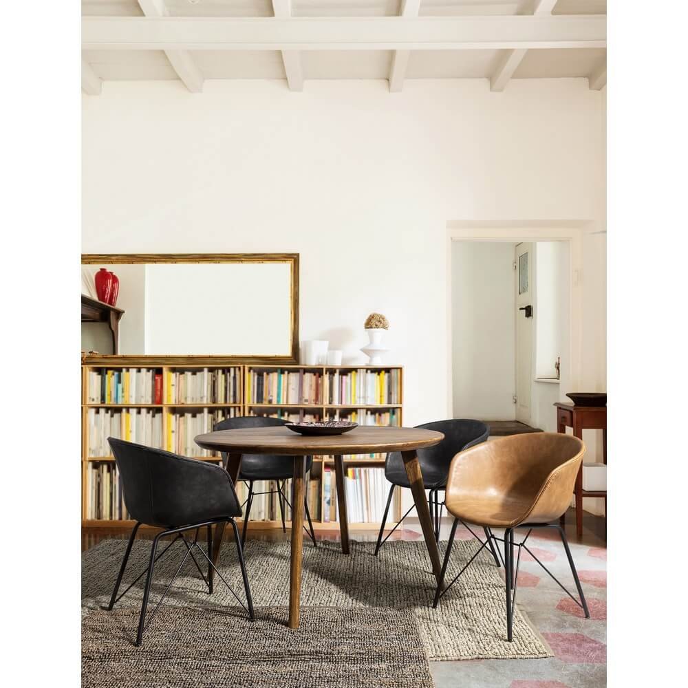 Il Tavolo Legno Marrone Rustico da Interno Ø120 cm – JAXON è l’essenza del design naturale e autentico, perfetto per arredare con carattere un ambiente domestico in stile rustico o contemporaneo. Realizzato in legno massello di mango con finitura a base d’acqua, questo tavolo da pranzo si distingue per le sue linee semplici ma ricercate, che valorizzano la texture viva e le venature materiche del legno. Il piano rotondo da 120 cm offre un’ampia superficie conviviale, ideale per accogliere fino a quattro persone in un’atmosfera calda e accogliente. Le gambe leggermente inclinate, da assemblare, donano stabilità e un tocco rétro che richiama lo stile scandinavo, pur mantenendo un’anima rustica e naturale. Il colore marrone caldo crea armonia visiva e si adatta con facilità a diversi stili di arredo, dal country chic al moderno più essenziale. Il tavolo JAXON trova la sua massima espressione in una cucina o sala da pranzo dove si desidera unire funzionalità, estetica artigianale e comfort quotidiano.