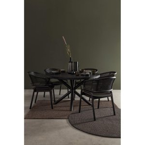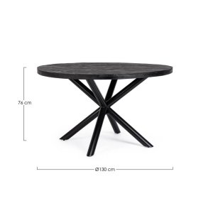 Elegante e dal forte impatto visivo, il Tavolo Legno Nero Moderno da Interni Ø130 cm – SELENE rappresenta una scelta di design ideale per chi desidera arredare con personalità la propria zona pranzo. Il piano rotondo in legno di mango, rifinito con una vernice a base di nitrocellulosa, esalta la naturale venatura del materiale pur mantenendo un sofisticato total black, perfetto per ambienti moderni o industriali. Le gambe incrociate in acciaio verniciato a polvere epossidica, dal design geometrico audace, non solo offrono eccezionale stabilità, ma diventano anche un elemento decorativo distintivo che dona movimento e carattere all’intero arredo. La struttura imponente ma armoniosa del tavolo SELENE crea un punto focale elegante e contemporaneo, ideale per accogliere pranzi conviviali o riunioni familiari, offrendo comfort e stile senza compromessi. Perfetto per ambienti indoor di gusto moderno, minimal o urban chic, questo tavolo da pranzo unisce materiali di qualità a un’estetica ricercata, trasformando ogni occasione in un’esperienza conviviale dal sapore raffinato.