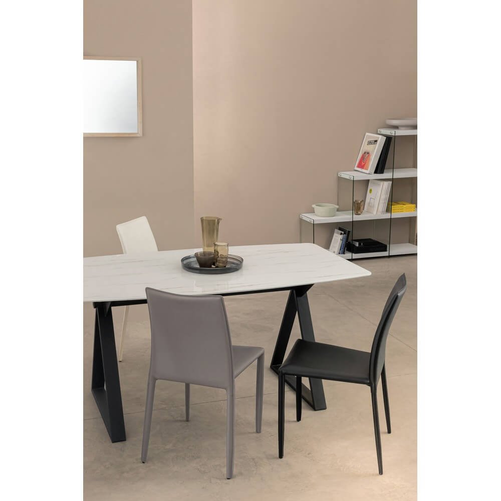Il Tavolo Vetro Nero Moderno da Interno 160×90 cm – LUNA è l’elemento d’arredo perfetto per chi cerca uno stile contemporaneo dal forte impatto visivo senza rinunciare a funzionalità e robustezza. Il piano in vetro temperato da 10 mm, impreziosito da una raffinata finitura a effetto marmo ottenuta tramite rivestimento cartaceo e vernice in resina, conferisce eleganza e luminosità agli ambienti. Le gambe incrociate in acciaio verniciato a polvere epossidica, dal design geometrico essenziale e deciso, assicurano stabilità e un tocco industrial-chic che si adatta perfettamente sia a sale da pranzo moderne che a contesti open space di design. La combinazione tra vetro e metallo nero dona al tavolo LUNA un aspetto sofisticato ma al tempo stesso sobrio, ideale per dare carattere agli interni con una forte personalità. Questo tavolo da pranzo moderno si distingue per l’equilibrio tra estetica e praticità, diventando il fulcro attorno al quale vivere momenti di convivialità e stile.