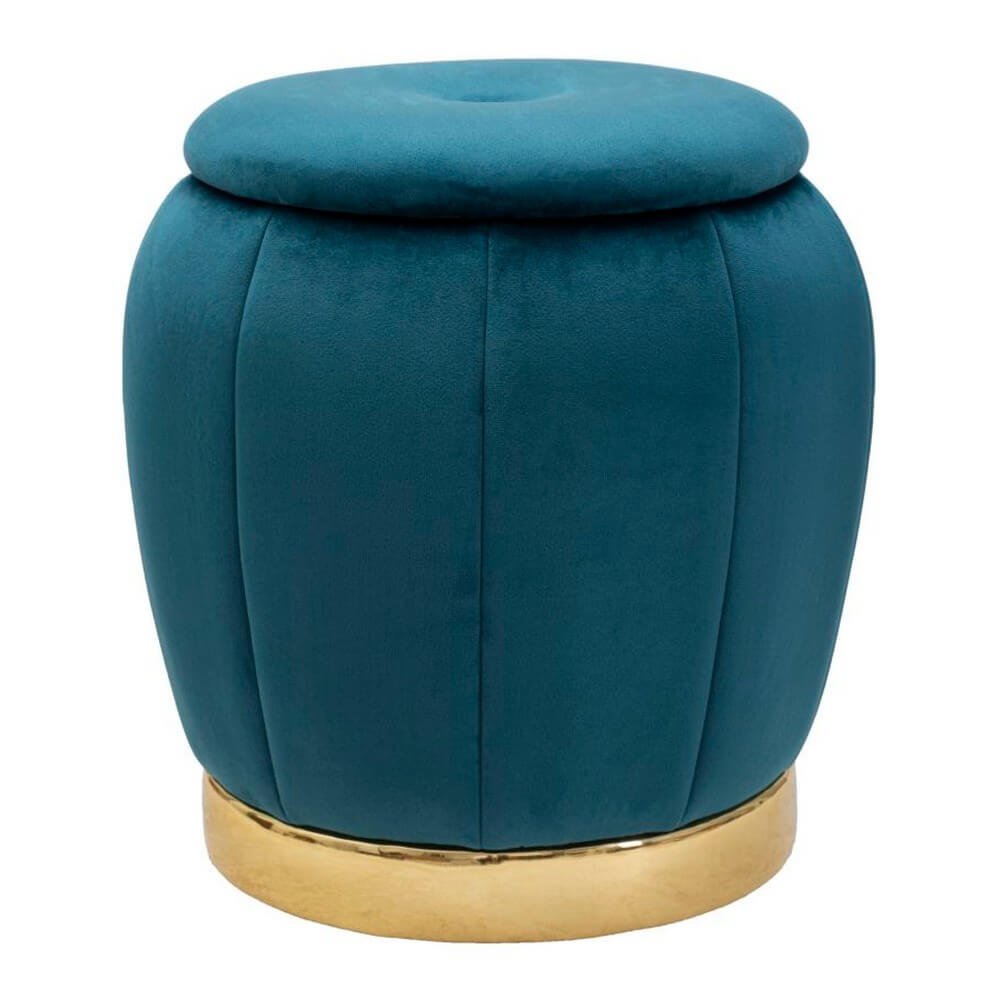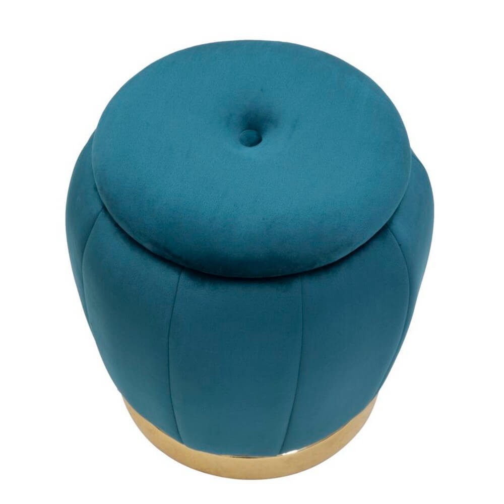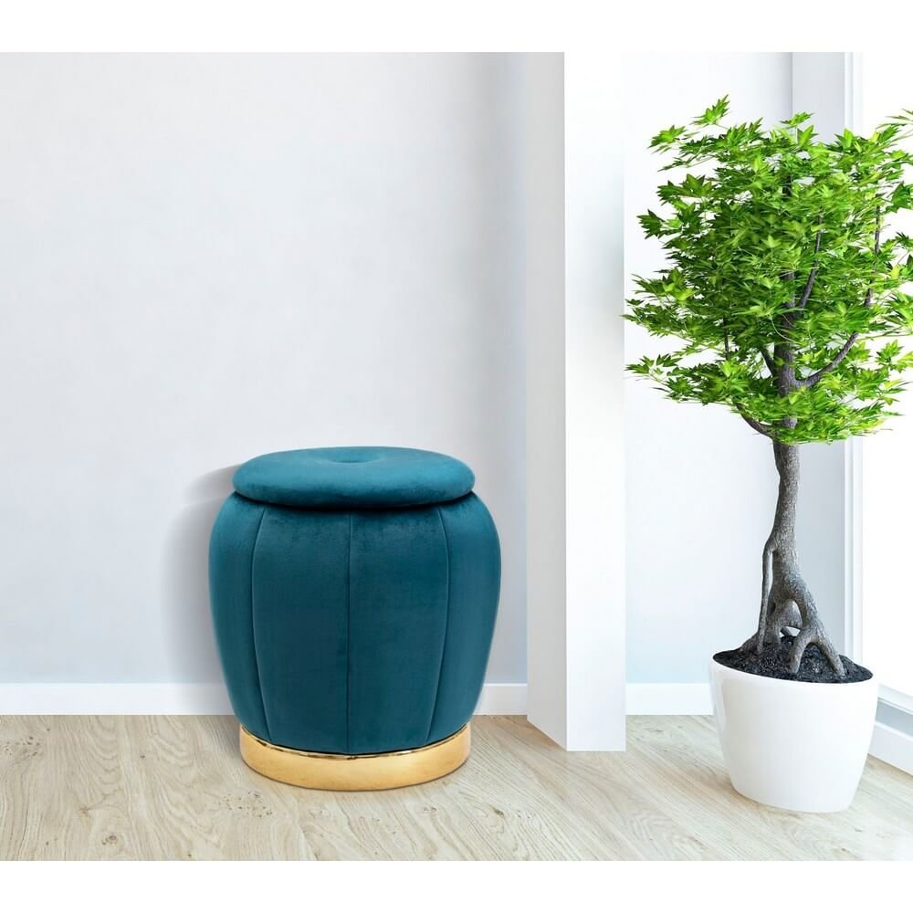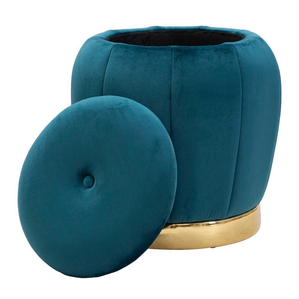 Pouf contenitore in legno e velluto color ottanio. Sedute dalla finitura dorata che si ispirano ai camerini delle grandi dive di Hollywood. Ideali da collocare in camera da letto o in salotto per sentirsi delle star.