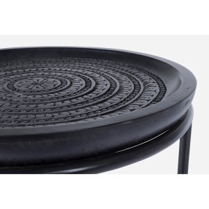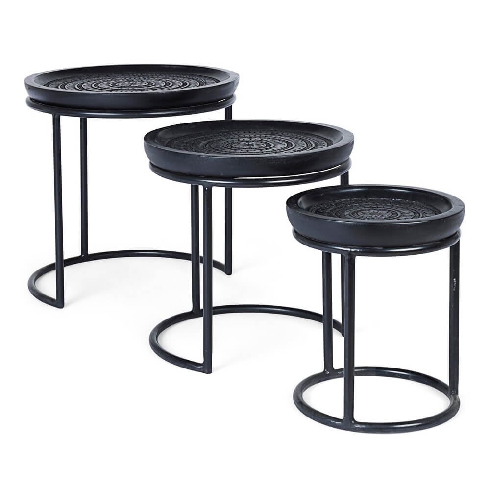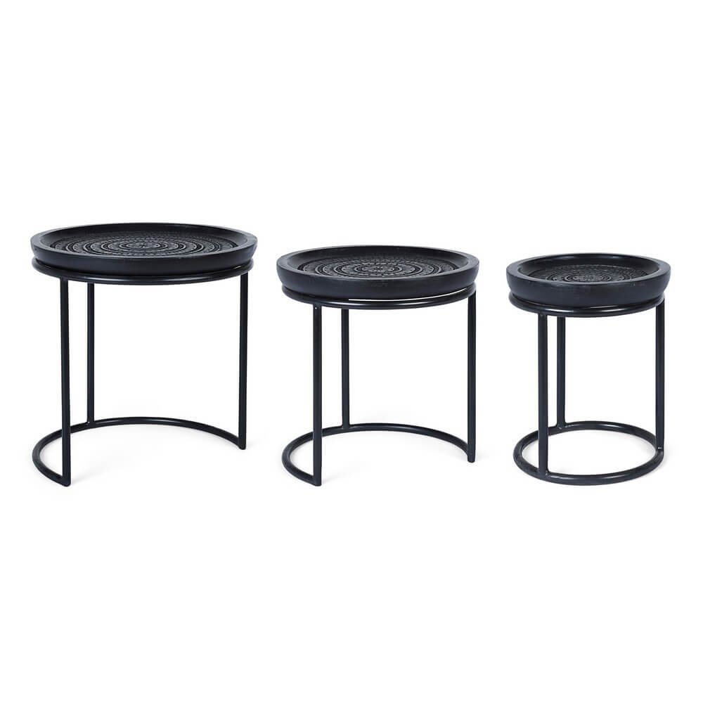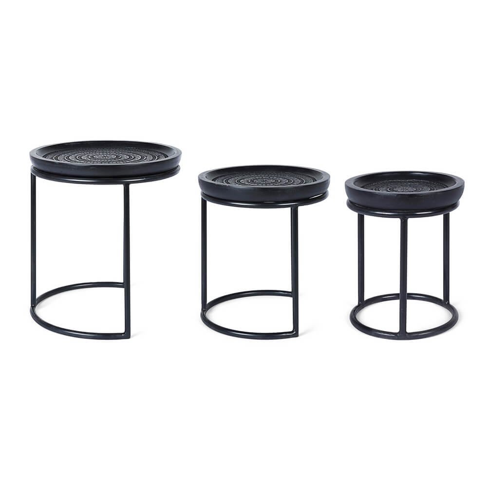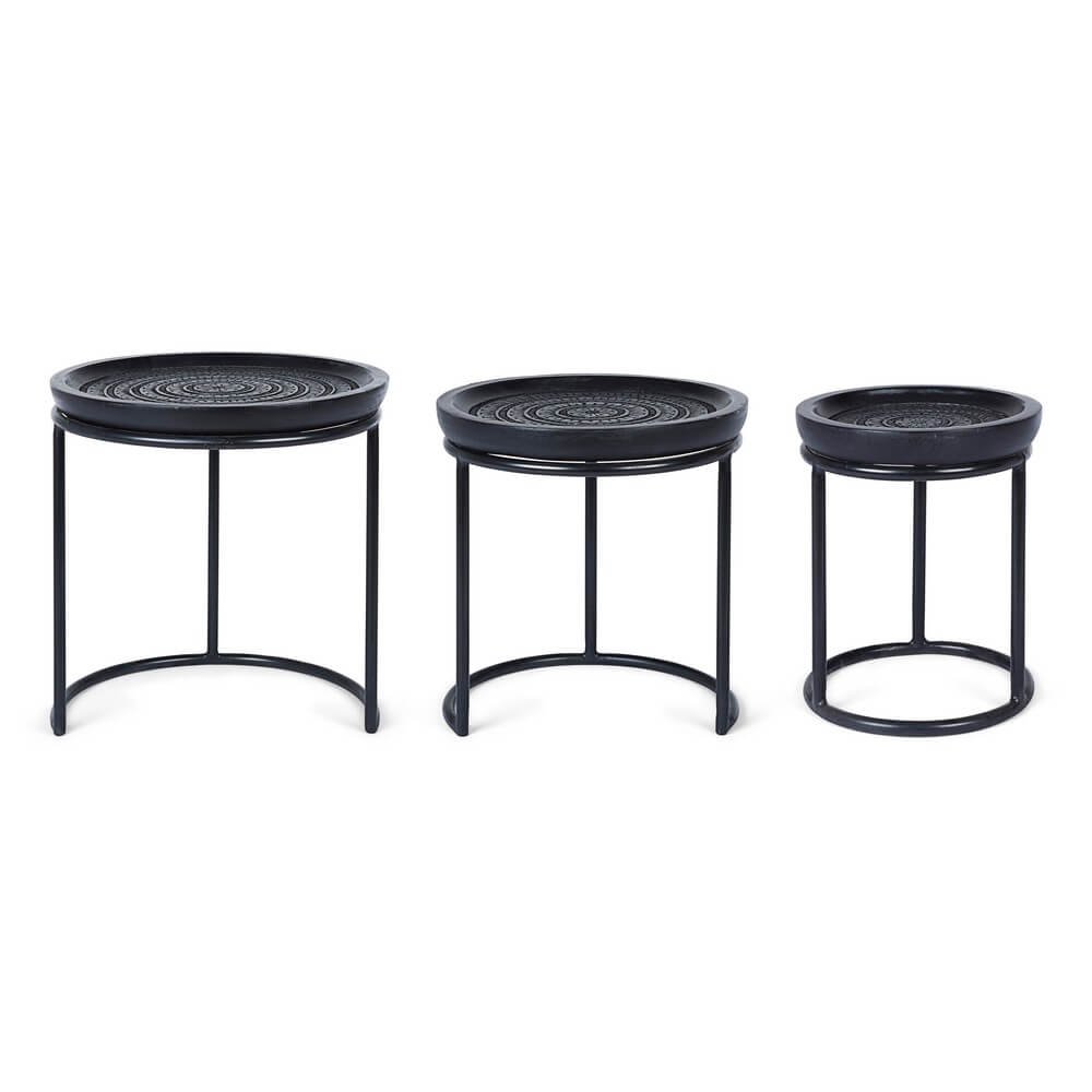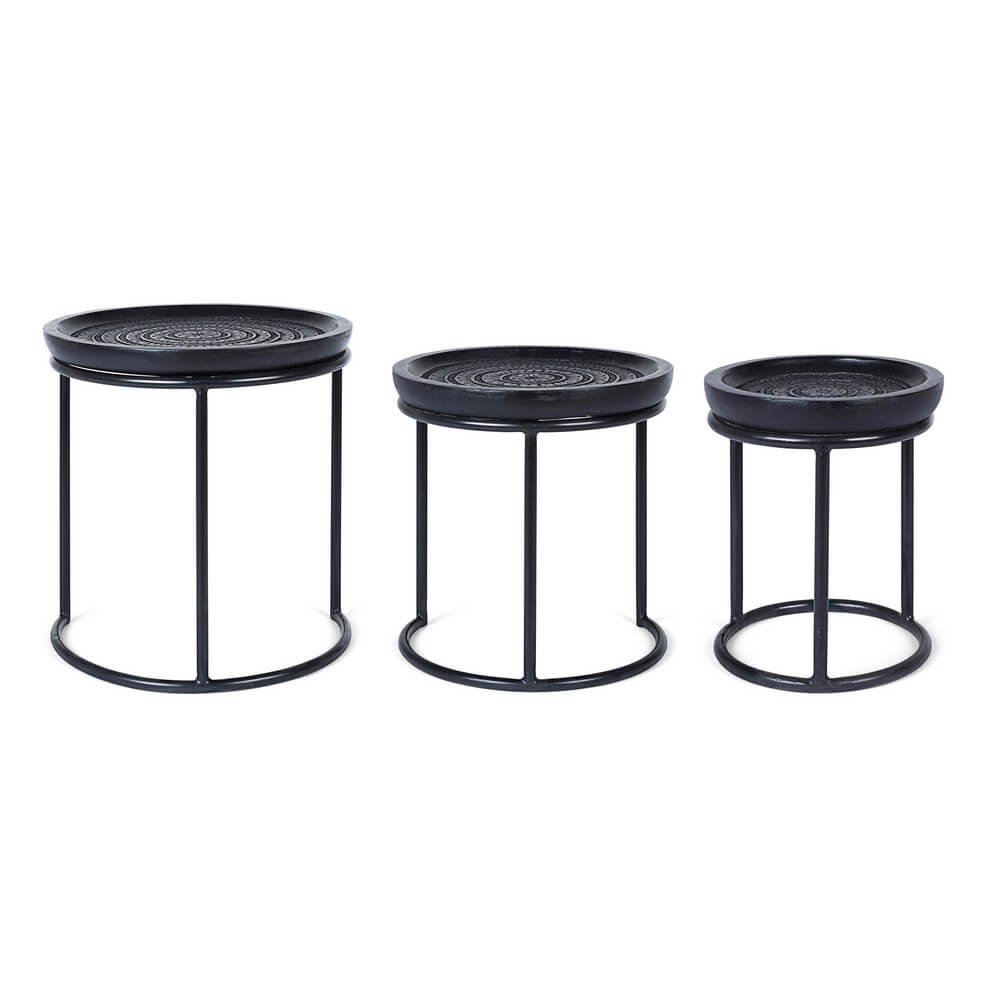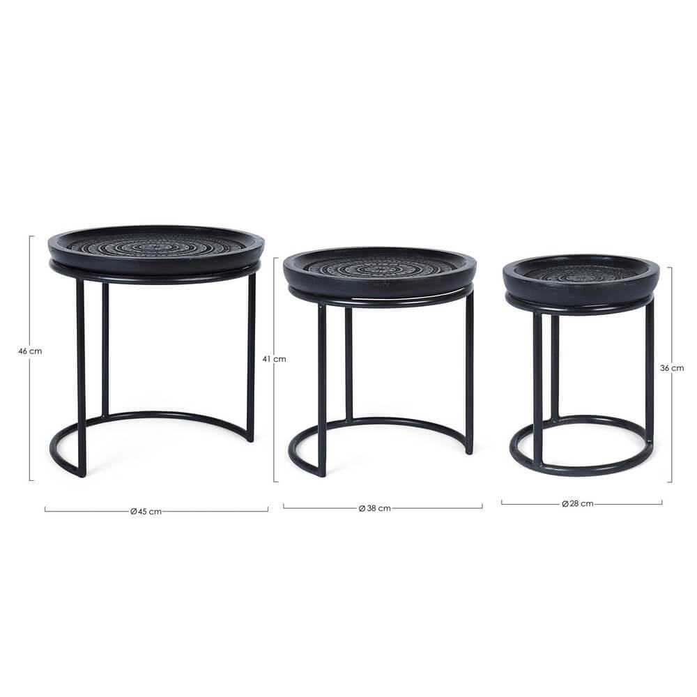 Il Set 3 Tavolini Legno Nero Moderni da Interno – EMPRESS è la scelta ideale per chi desidera impreziosire il proprio salotto con un complemento d’arredo elegante, funzionale e di grande impatto visivo. Il design moderno e minimale incontra l’artigianalità dei materiali: la struttura in acciaio verniciato a polvere epossidica garantisce solidità e durata, mentre il piano in legno di mango con finitura a base di nitrocellulosa offre un’elegante texture naturale impreziosita da raffinate incisioni concentriche. Il colore nero, raffinato e versatile, si adatta perfettamente a interni dallo stile contemporaneo, industrial o etnico, aggiungendo un tocco sofisticato e ricercato. Questi tre tavolini impilabili di dimensioni diverse sono perfetti come punti d’appoggio accanto al divano, come coffee table o come dettagli decorativi nei tuoi spazi living. Il Set EMPRESS valorizza ambienti moderni grazie alla sua estetica armoniosa e all’originale equilibrio tra materiali naturali e metallo, trasformando ogni momento quotidiano in un’esperienza di stile.